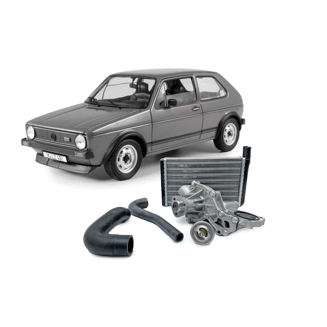 Es kommt darauf an, welchen 1erGTI du baust. Beim silbernen revell ist der "alte" GTI 1er und der hat keinen Ausgleichsbehälter am linken Dom. Somit wäre der Kühler "richtig". Der "neueren" 1er PIRELLI GTI, der blaue von Revell, hat den Ausgleichsbehälter, nur der Verschluss auf dem Kühler müsste weg. (siehe: https://www.autobild.de/klassik/artikel ... 92831.html)