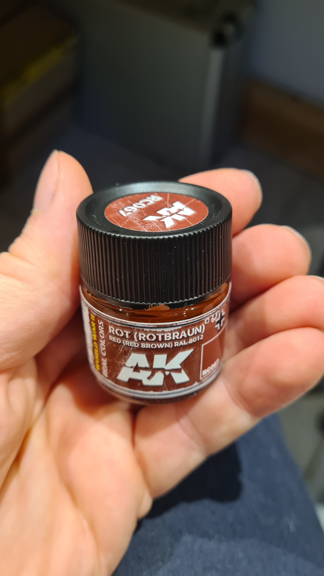 Danach dann die eigentliche Farbe für die Räder. Ich hatte mir alle Farbenpfehlungen in der Anleitung angeschaut und bin dann vom Farbton bei der Farbe von AK hängengeblieben.