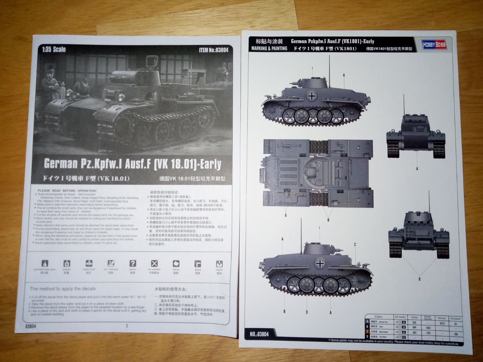 Farbangaben in der Bauanleitung sind in : Mr.Hobby, Vallejo, Modelmaster,