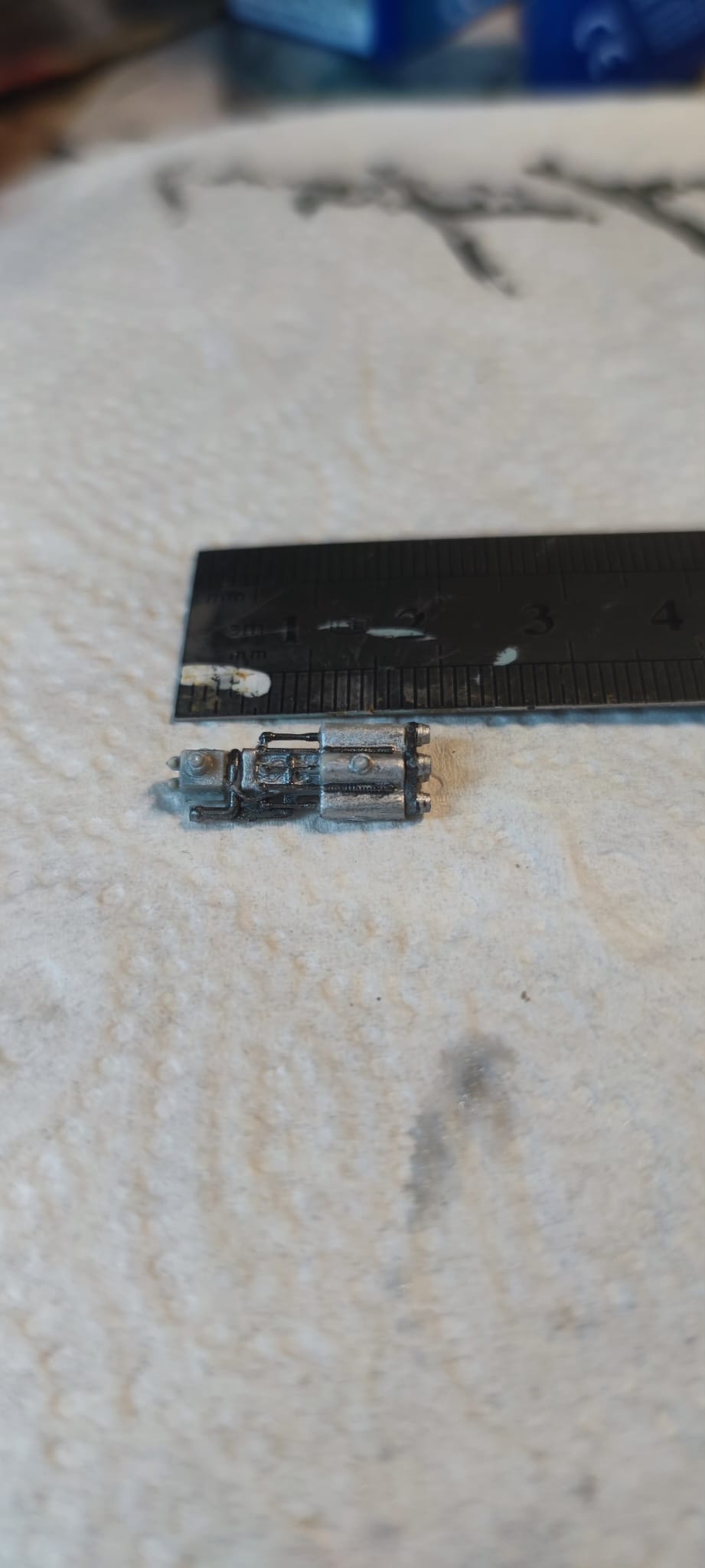 Heute morgen konnte ich weitermachen.... Der "Motor". 3 Teile, aber dafür drei Farben, Gunmetal, Alu matt und Alu metallic...