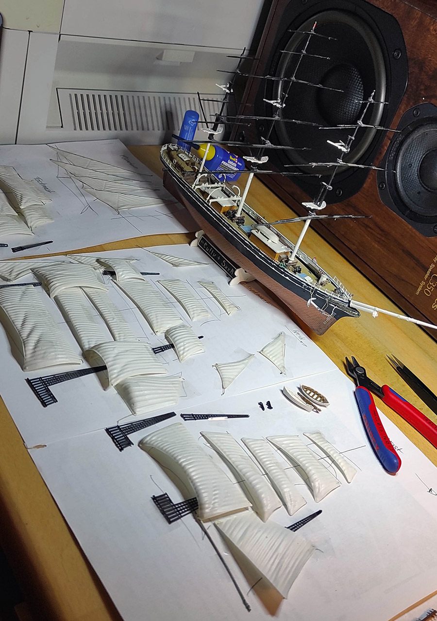 Teilweise kombiniere ich den originalen Plan der Version 1/220 mit dem weitläufigeren Takelplan der 1/96.