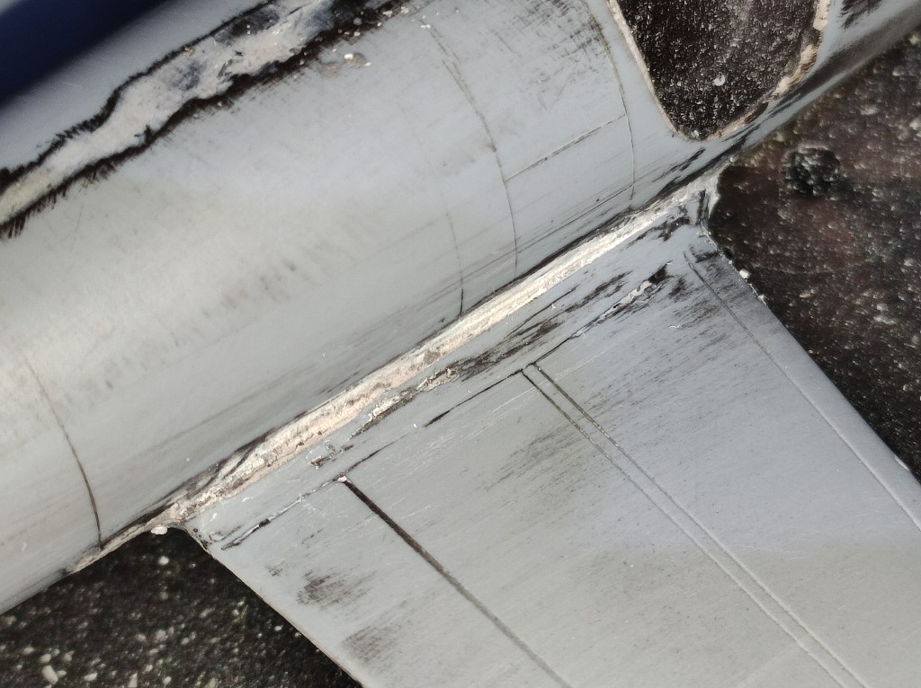 Unten an den Flügelwurzeln war es dann nochmal kompliziert. Leider kommt man hier nur schlecht Ran und es ist furchtbar hier zu erkennen wie gut es abgeschliffen wurde