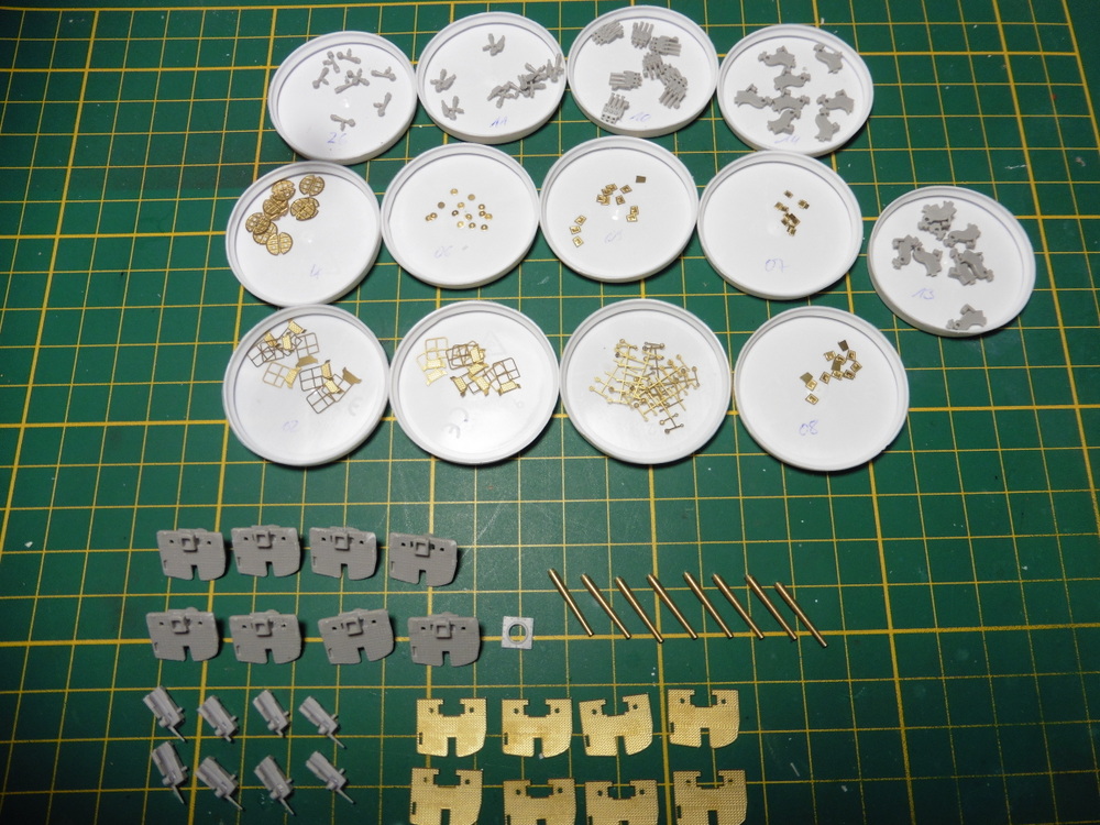 Ich war bei den 5'' Geschützen stehen geblieben . Hier sind 8 Stck zu fertigen . Also Überschaubar. Diese bestehen aus 19 Teilen . Auch hier kommt auch ein Teil der Komponenten aus dem Ätzteillager .