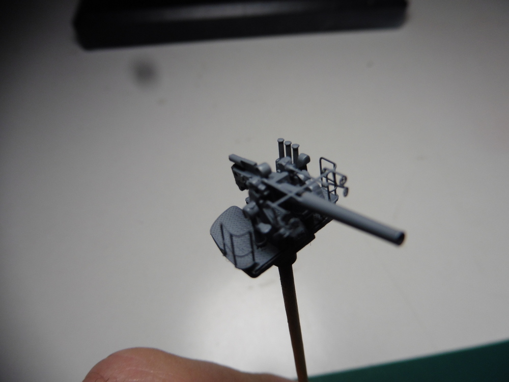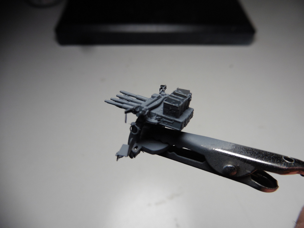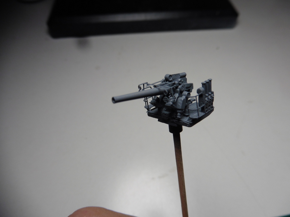 die 5'' Geschütze waren fertig und wollten Lackiert werden . Hier gabs nun keine Schwierigkeiten da einfach nur Grau . Somit Farbe in die Pistole und draufhalten :D