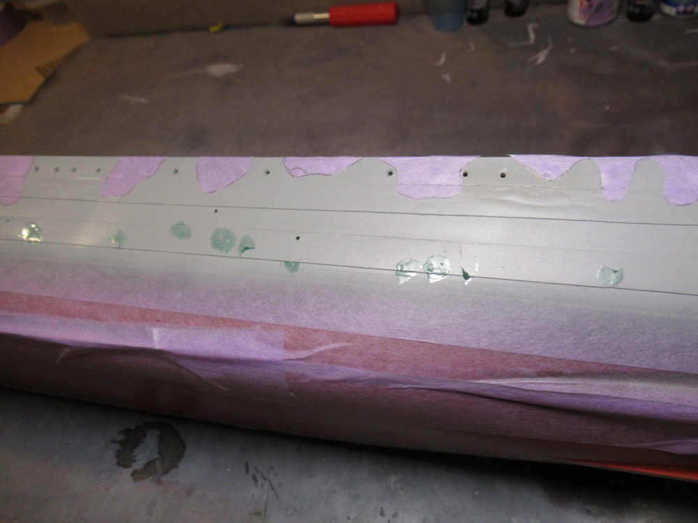 Hier ist darauf zu achten , dass es nur ganz leicht haften darf um beim entfernen nicht die Farbe des Rumpfes zu beschädigen .