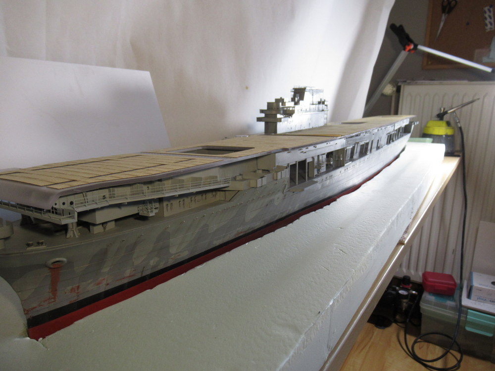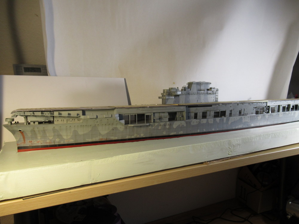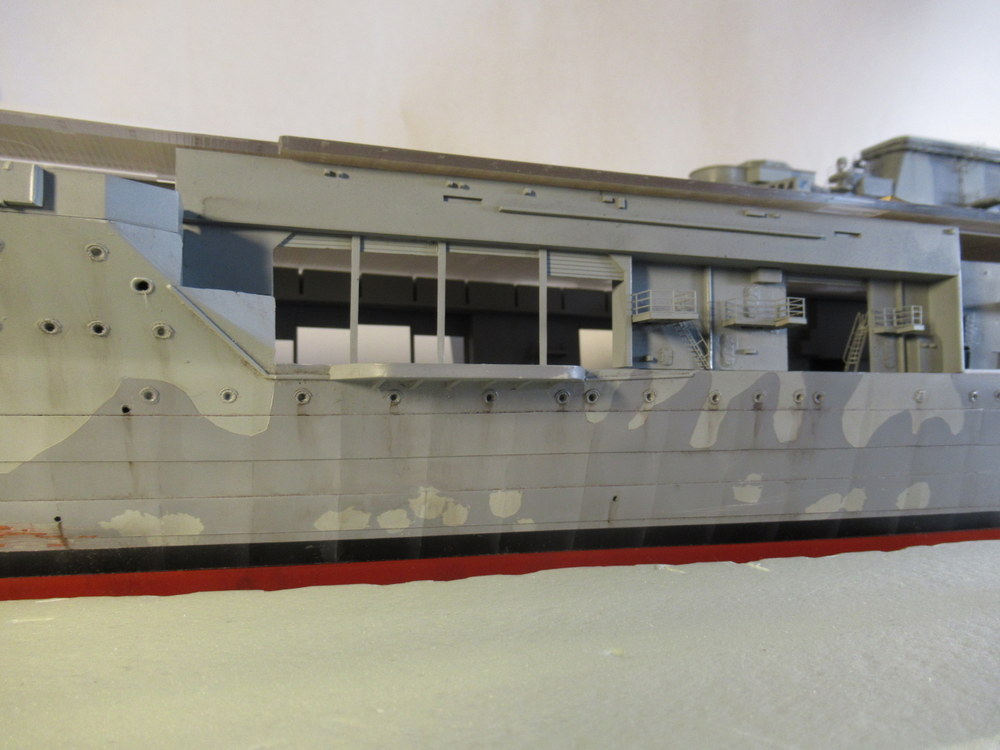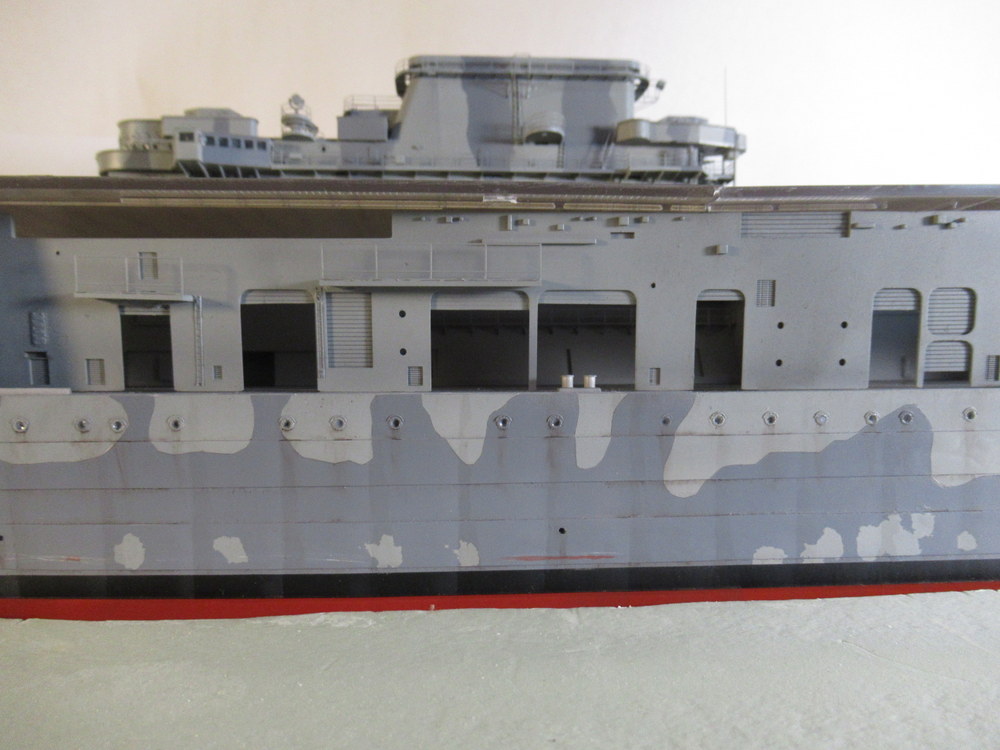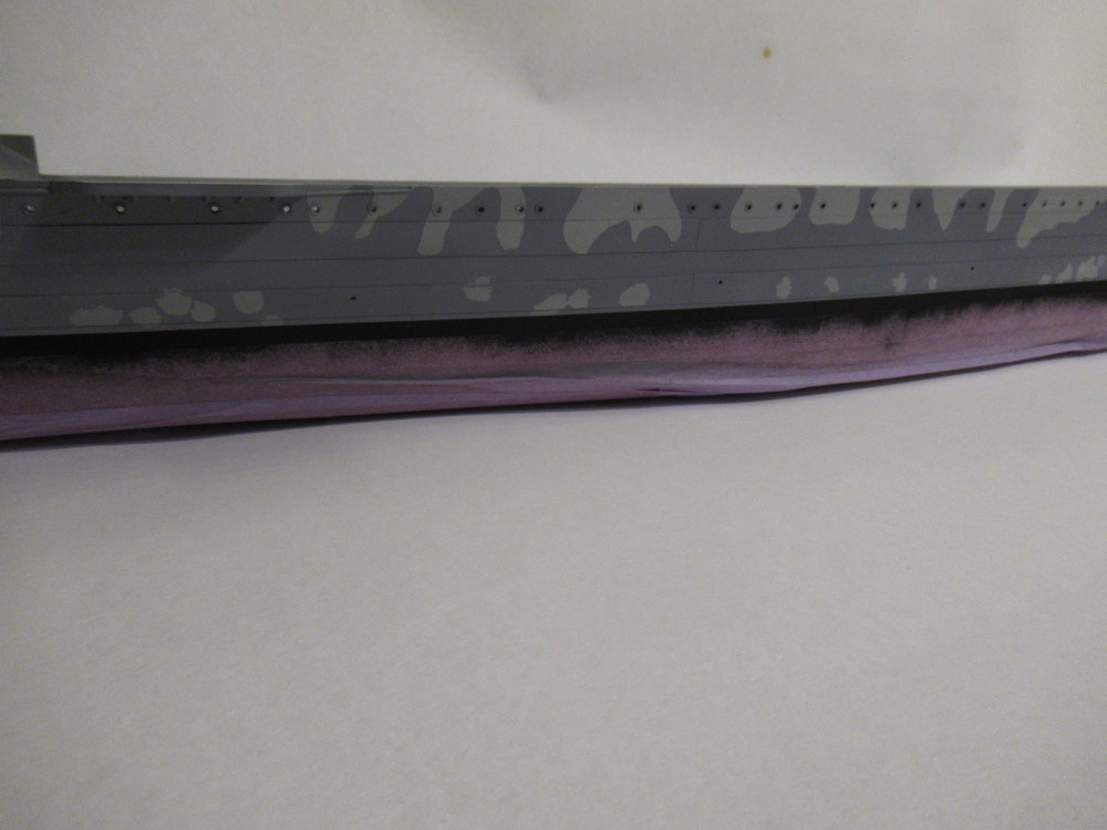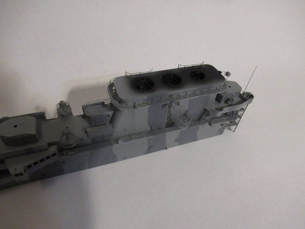 Die Insel wurde Maskiert und hat dann Ihren Tarnanstrich bekommen . War eine elendige abkleberei ,da ja die Laufstege etc schon dran waren .