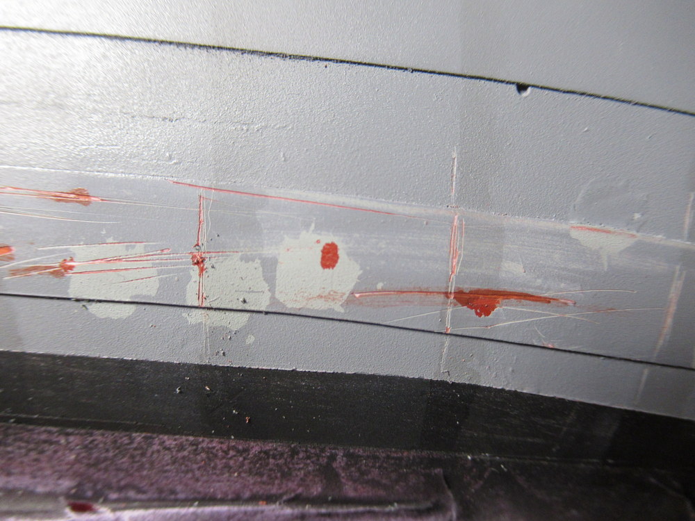 Um auch hier Farbabplatzungen darzustellen wurde wieder ein Chipping aufgetragen . Nach dem Lackieren der dunkelgrauen Farbe und dem durchtrocknen , konnte ich das Chipping dann wegrubbeln und Hellgrau kommt zum vorschein