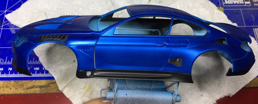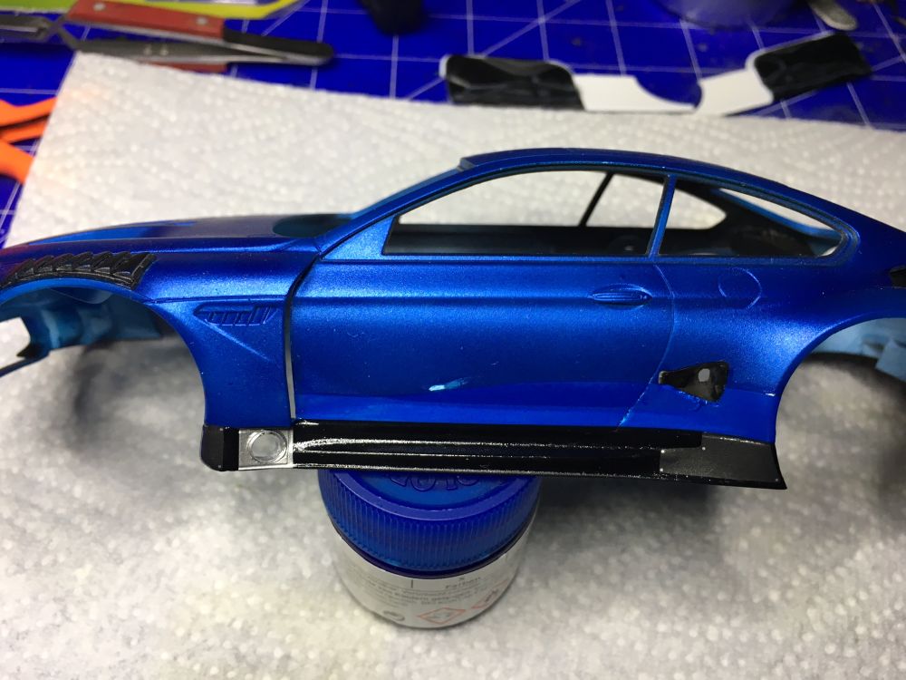 Außerdem kam eine Schicht Tamiya x22 Klarlack über alles, um die Karosserie für die vielen Decals vorzubereiten.