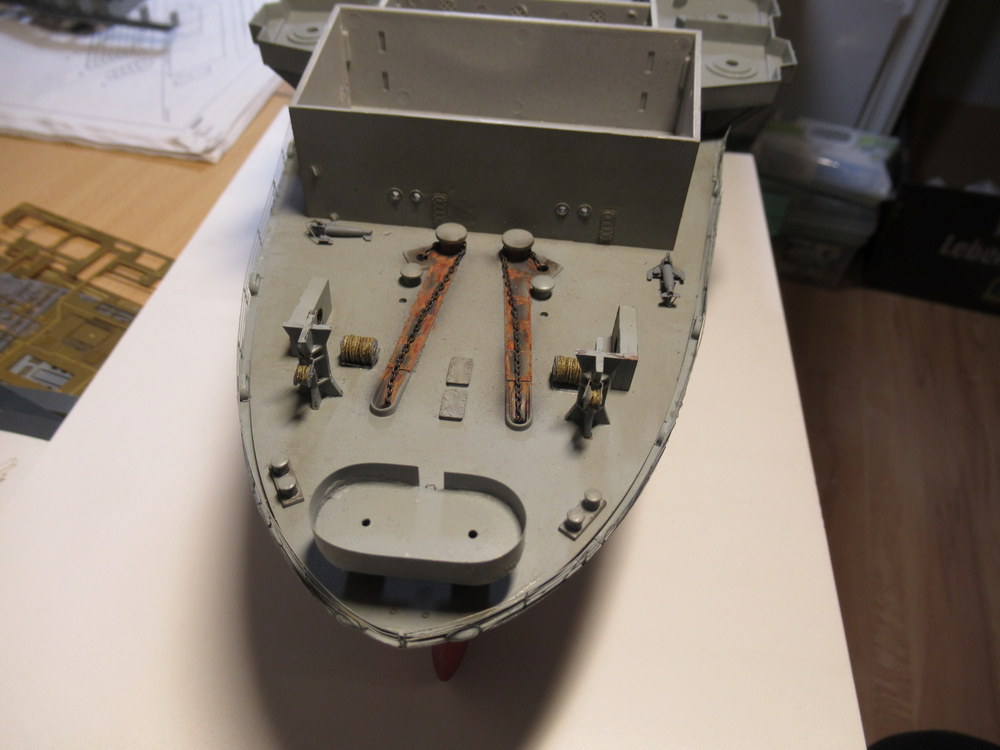 Die Strecke wo die Ankerkette drauf liegt ist absichtlich so Dunkel und verrostet gehalten. Wenn die Träger für das Deck eingebaut werden wird man kaum noch etwas davon erkennen . Und somit muste das verstärkt aufgetragen werden um im fertigen Zustand auch nur ein wenig zuu erkennen