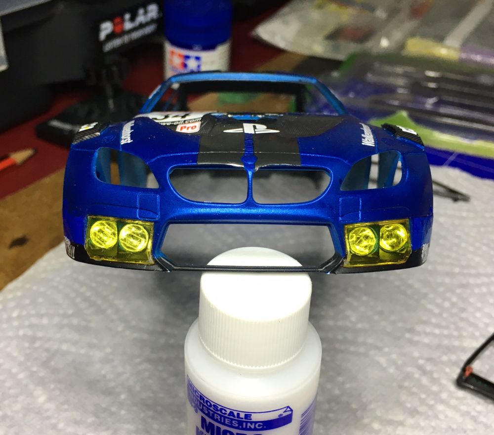 Als nächstes habe ich die unteren Scheinwerfer des M6 fertiggestellt und das "Glas" gelb eingefärbt.