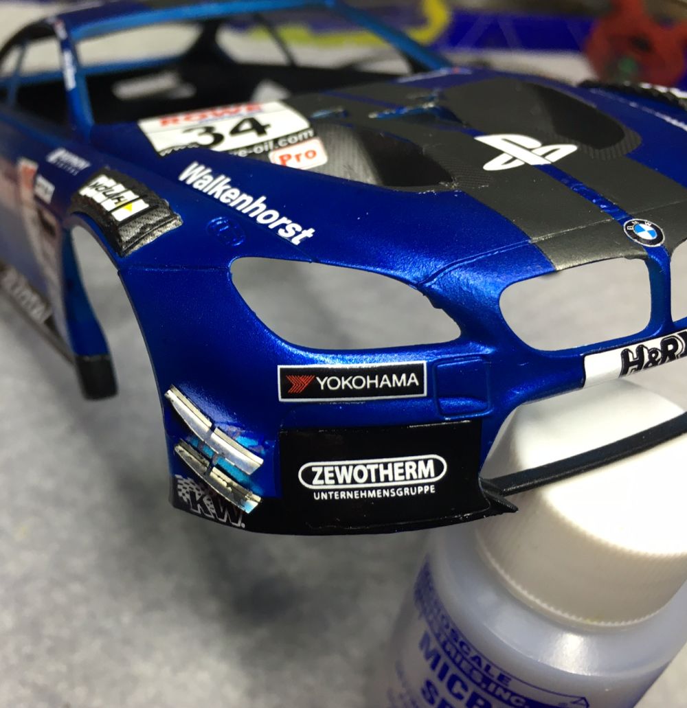 Die Decals auf den Reifen habe ich mit Mattlack und Pinsel versiegelt, so dass der Trägerfilm unsichtbar wurde.