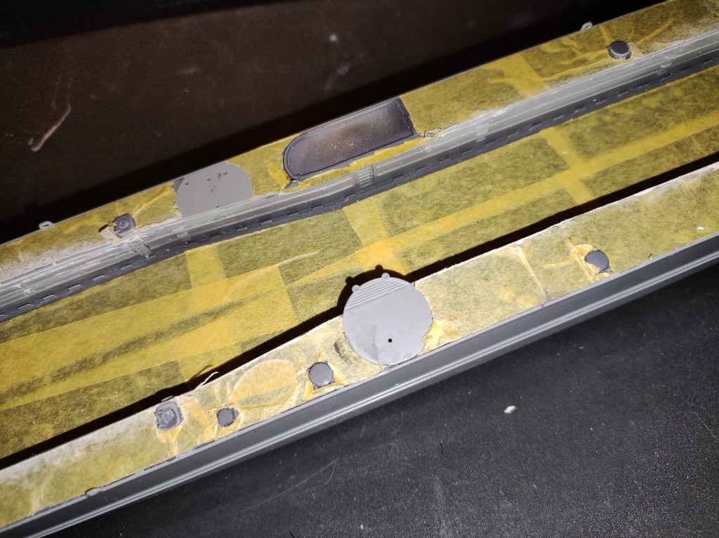 Auch heute ging es an der Krokodil weiter. Erstmal sah alles ganz gut aus. Die Lücken an dem Seitenwänden der Deckaufgänge wurden verschlossen. Ob das ausreicht um nach der Lackierung keinen Übergang mehr zu sehen werden wir sehen.