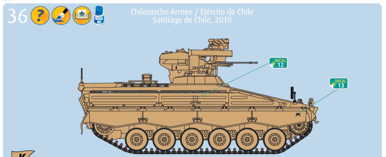 Schau mal bei dem Bausatz 03326 (scalemates) von Revell rein. Auf der letzten Seite sind solche Seitenansichten der Chilenischen Armee. Der ist nur in braun gehalten. Vielleicht kannst Du damit arbeiten.