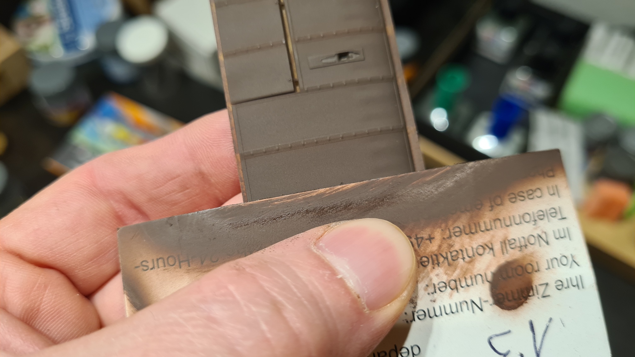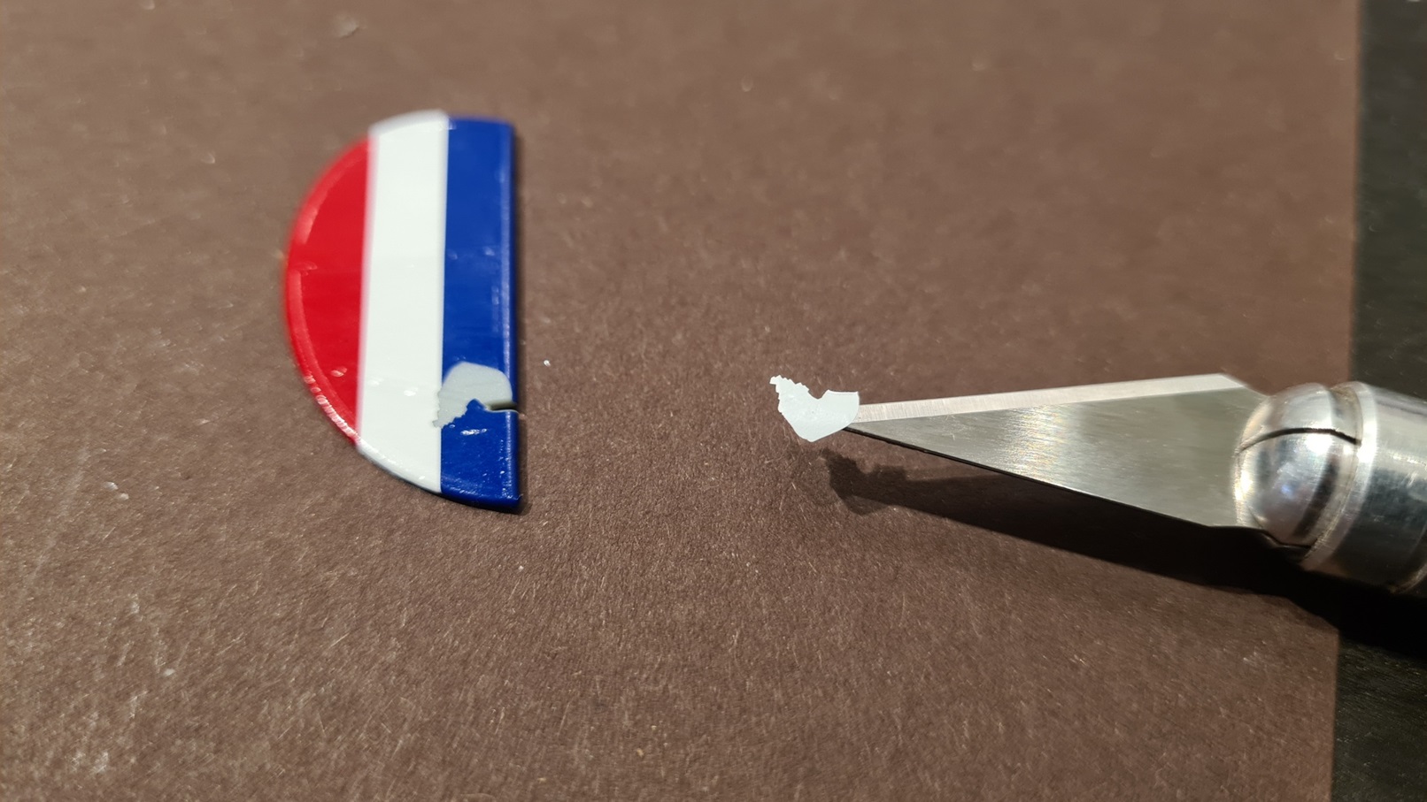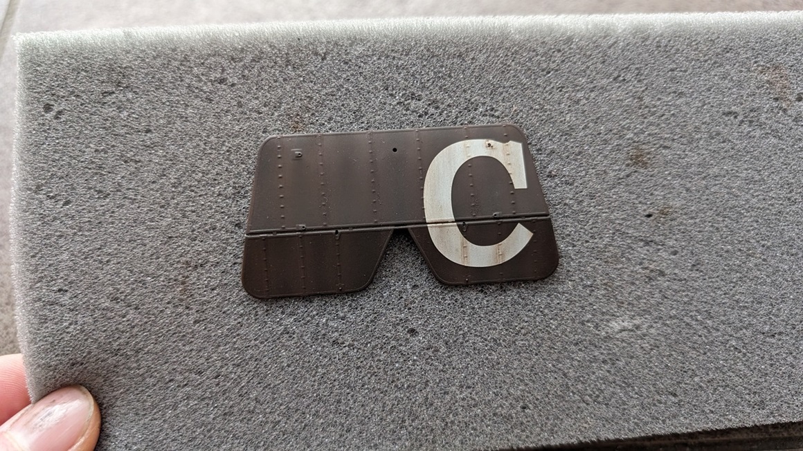 Eine Sache wollte ich aber trotzdem nicht unversucht lassen. Mit einer ganz frischen Bastelklinge konnte ich das Decalstück tatsächlich vom Maskierband lösen: