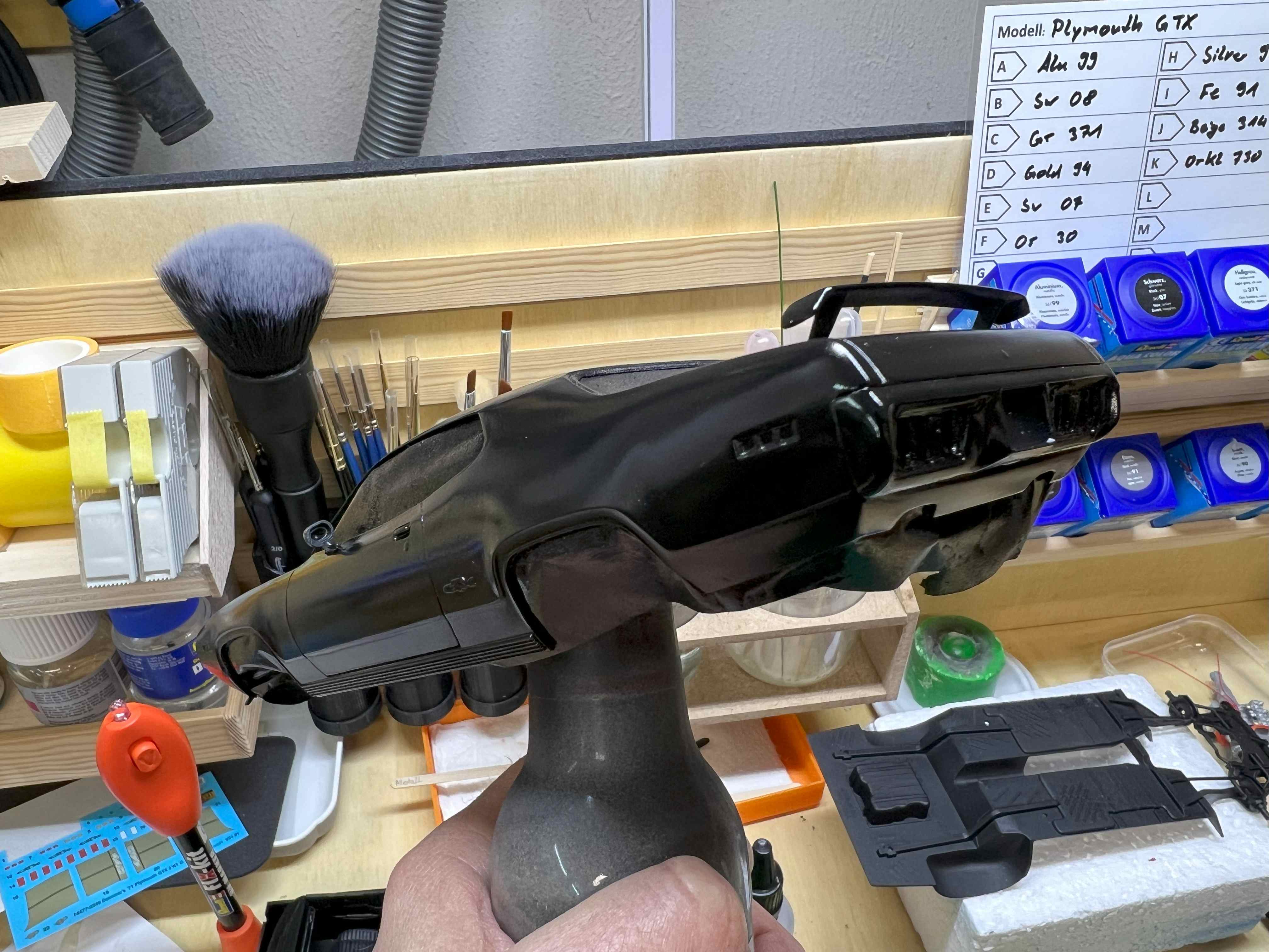 Der Rest wurde dann in seidenmattem Schwarz lackiert.