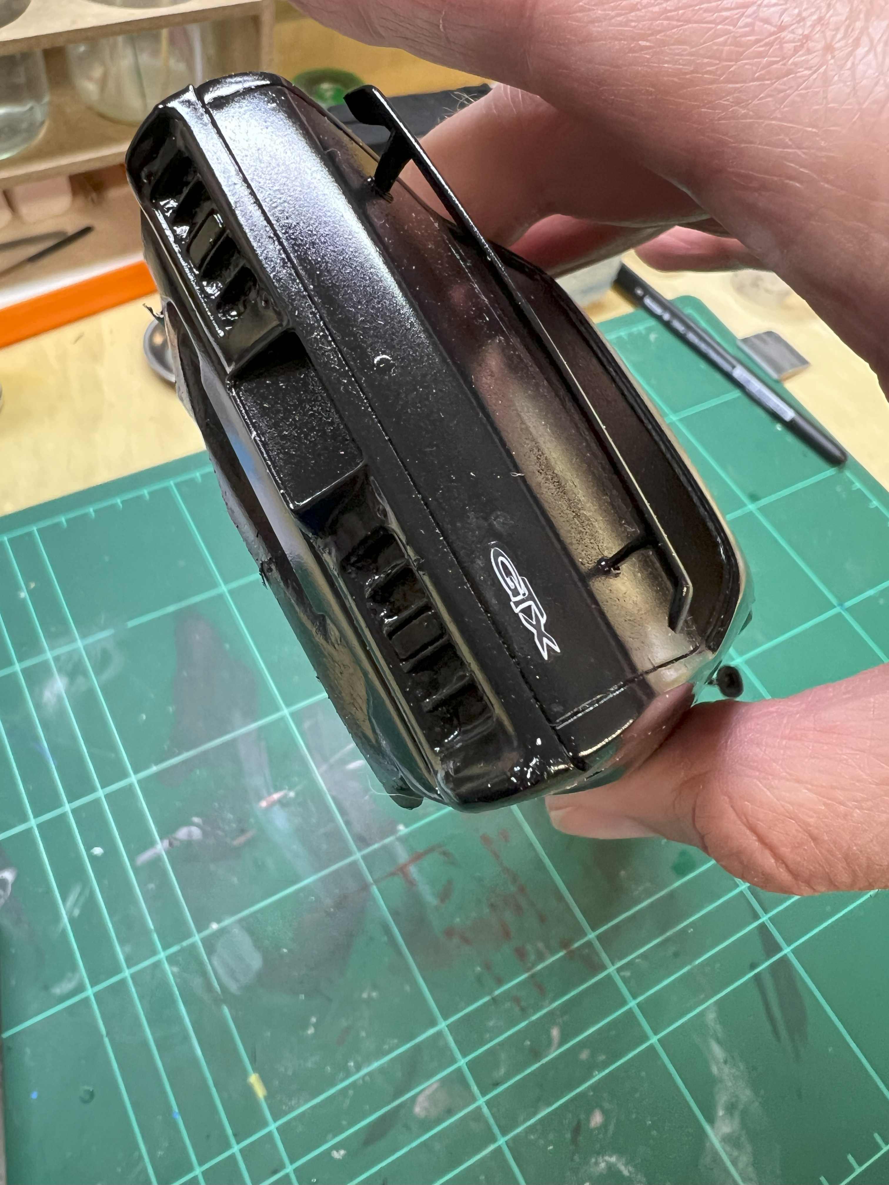 Es gab dann noch Decals für den "GTX" Schriftzug an der Seite und am Heck. Der Schriftzug ist schwarz mit leichter weißer Umrandung. Ich war erst skeptisch, ob man das überhaupt sieht, aber eigentlich bin ich ganz zurfrieden.
