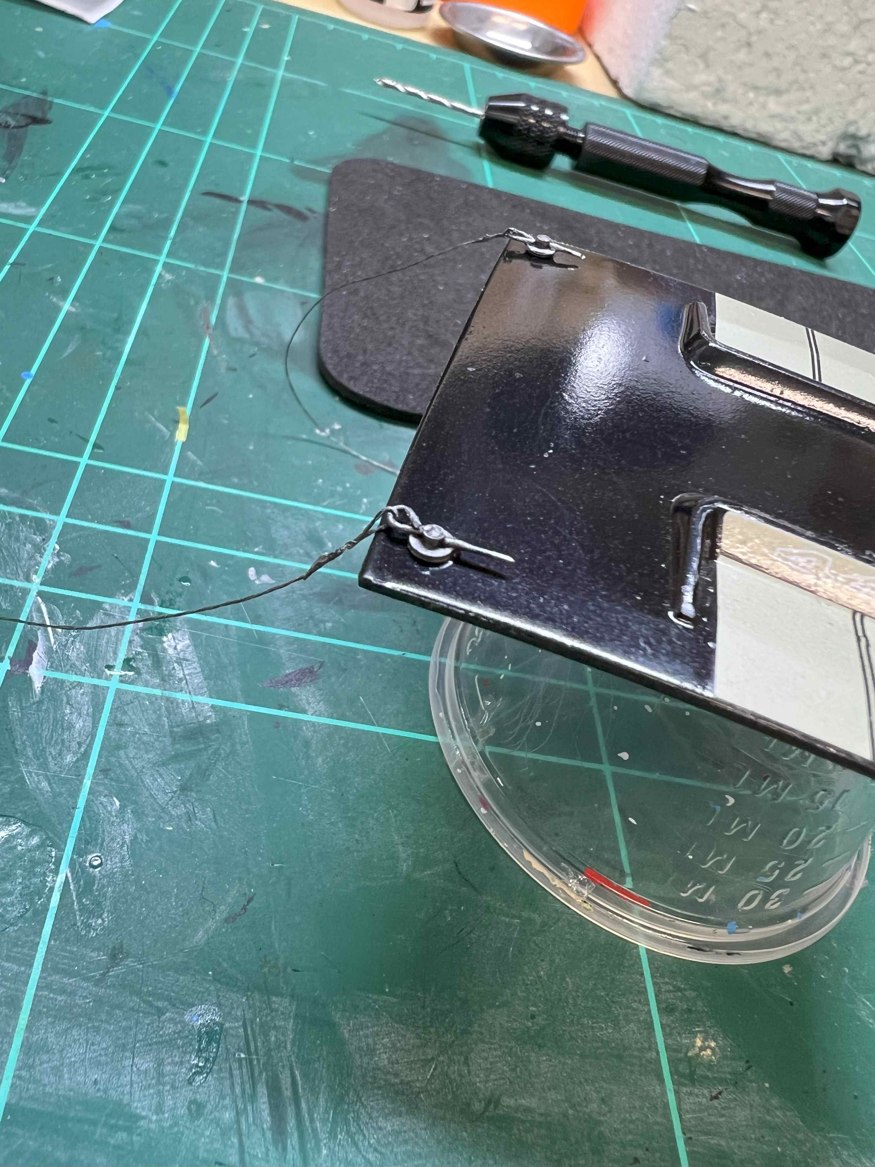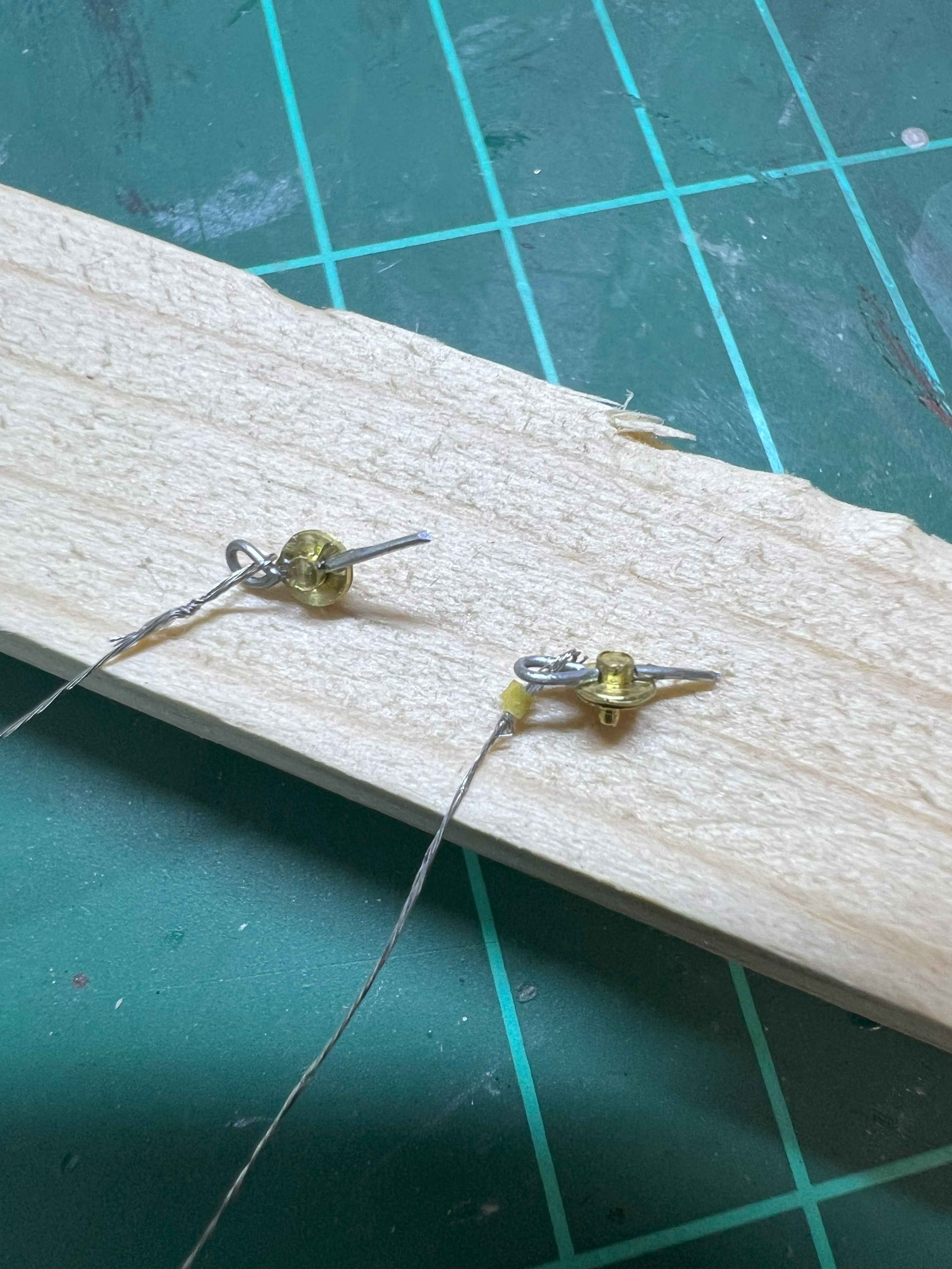 Ein Aufgekklebtes Drahtstück bildet hier den Splint ab. Dieser wird am Ende noch gekürzt, aber zum bemalen brauche ich noch etwas Draht zum festhalten. ;)