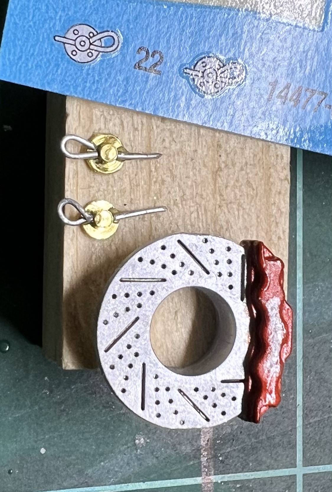 Hier mal der Vergleich zwischen dem Decal und meinem Nachbau, sowie die Bremsscheibe zum Größenvergleich.