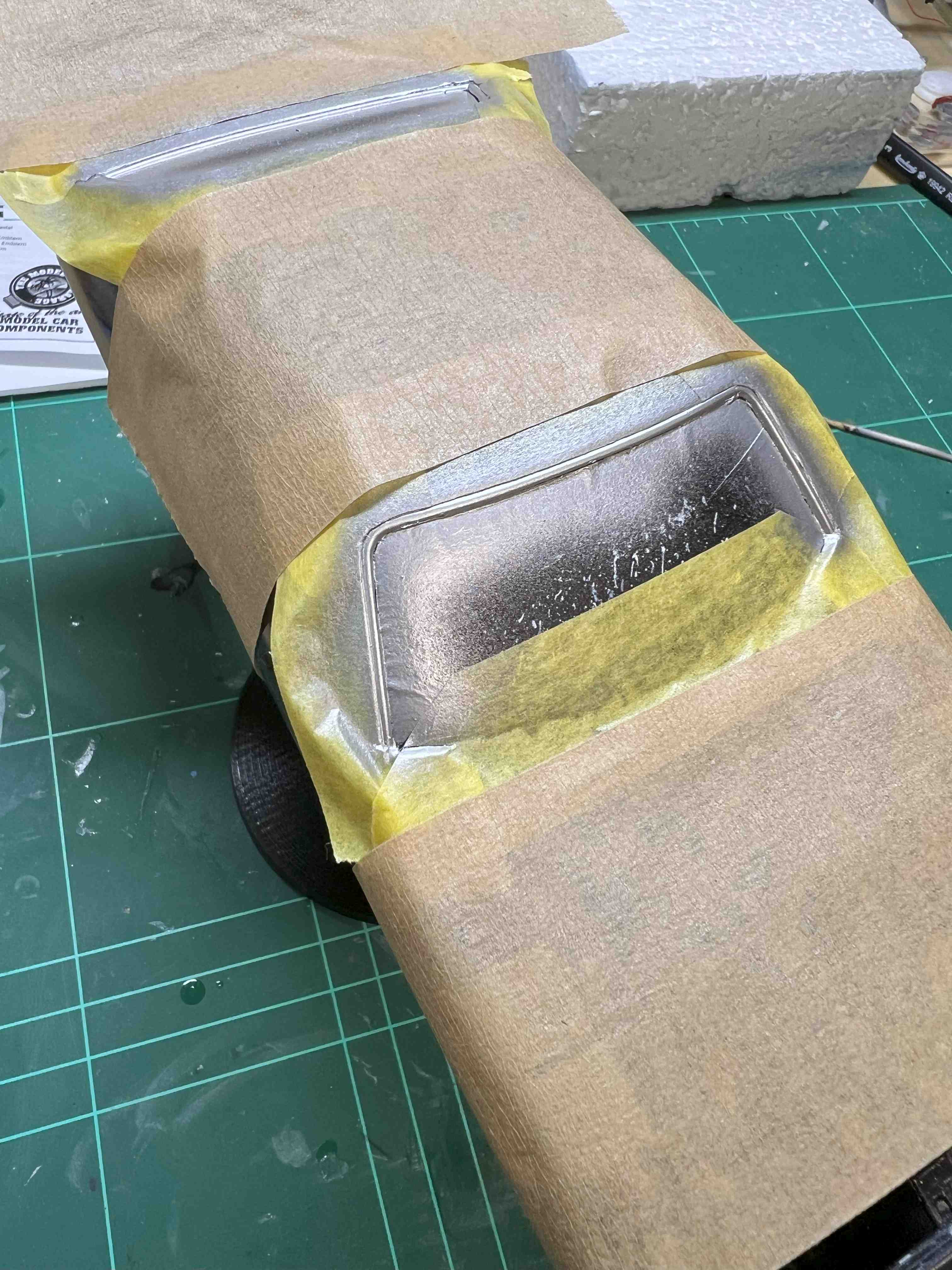 Nach dem die Lackierung so weit abgeschlossen war, habe ich noch die "Fensterrahmen" abgeklebt und mit Chrom lackiert.