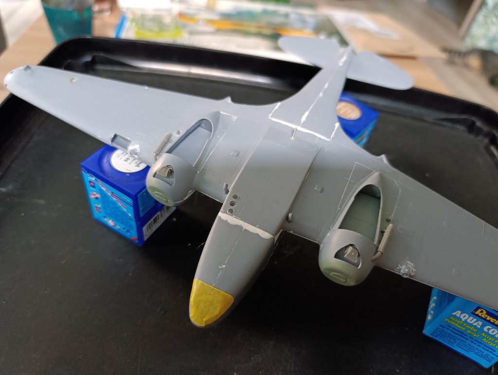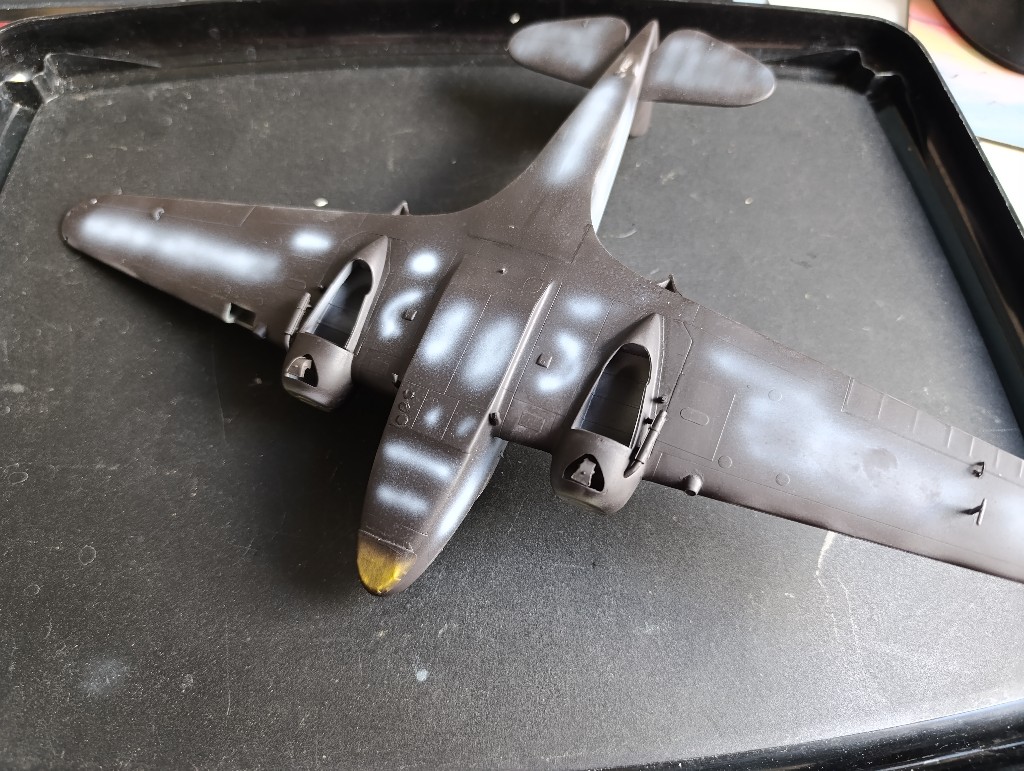 Es waren 3 oder vier Sichten nötig. Zwischen durch mussten Sachen ausgebessert werden. Ansonsten habe ich ein Ersatz für das Teil am Höhenruder gebaut. Ursprünglich war das Mal ein Angusspunkt, jetzt ist es Teil des Flugzeugs. Manchmal sind die Lösungen einfach.