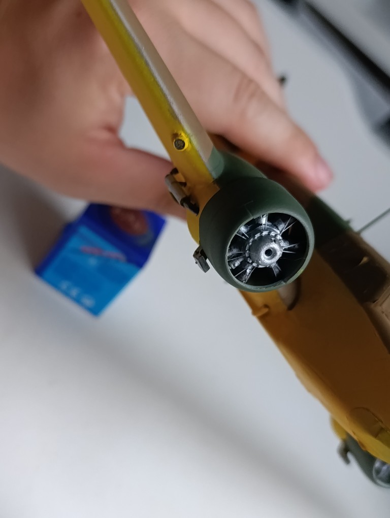 Unten eine ähnliche Bild, viel Spachtelei, aber auch Resinteile mussten an den Gondeln verbaut werden. Da kommt die zweite Schwierigkeit. Der Sekundenkleber war so gut wie eingetrocknet. Irgendwie ging es dann aber