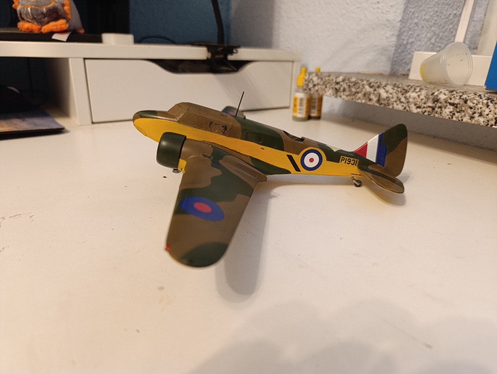 So bis jetzt war es ein langer Kampf, die Oxford soweit zu bringen, doch jetzt war es an der Zeit Abziehbilder auf den Flieger zu werfen. Wie schön an der lackierung zu sehen entschied ich mich für die Oxford der 2. Service Flying Trainings School, die nach wenigen Monaten Dienstzeit einem Luftangriffe der deutschen Bomberverbände 1940 zum Opfer fiel.