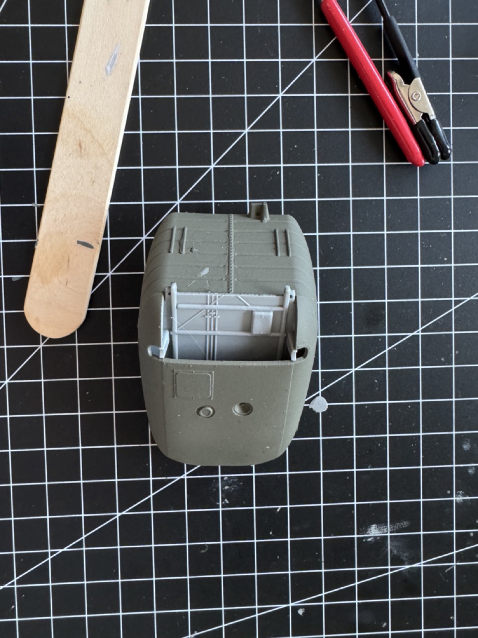 Den Boden und die Rückwand habe ich mit der Airbrush lackiert. Mit dem Ergebnis bin ich auch weitestgehend zufrieden.