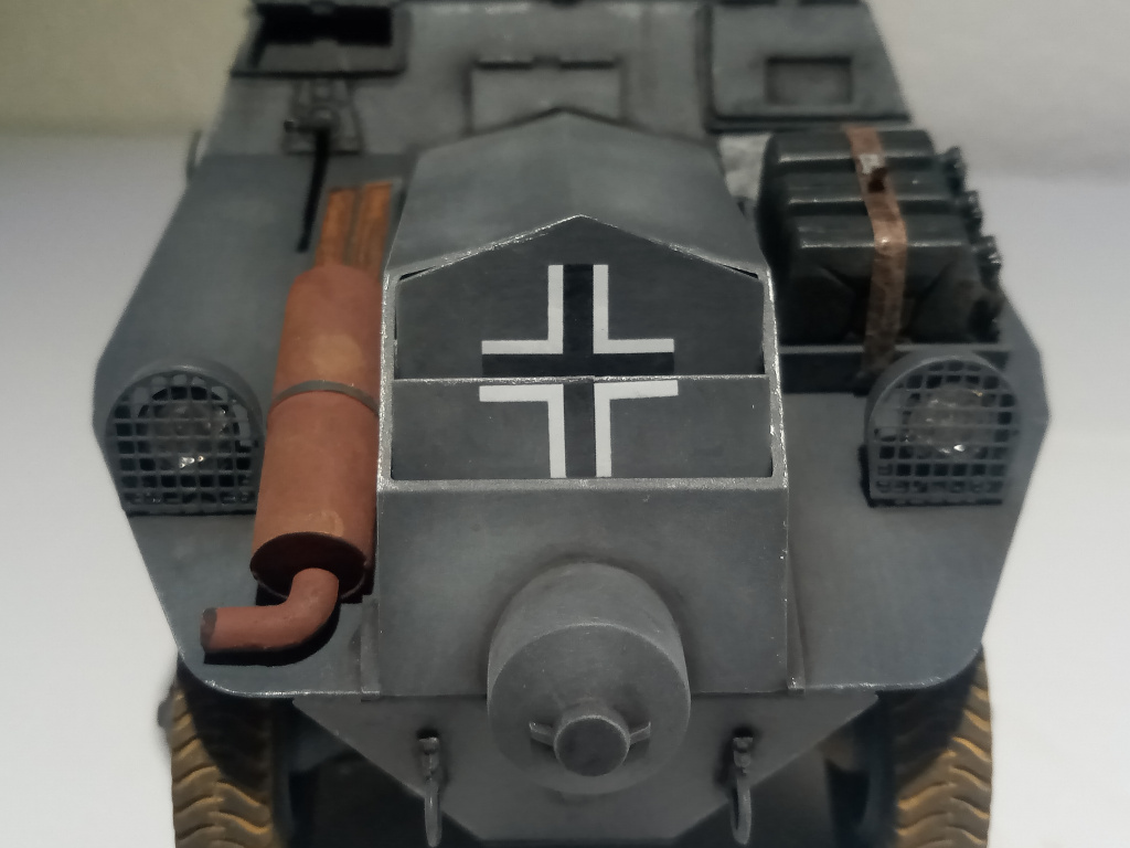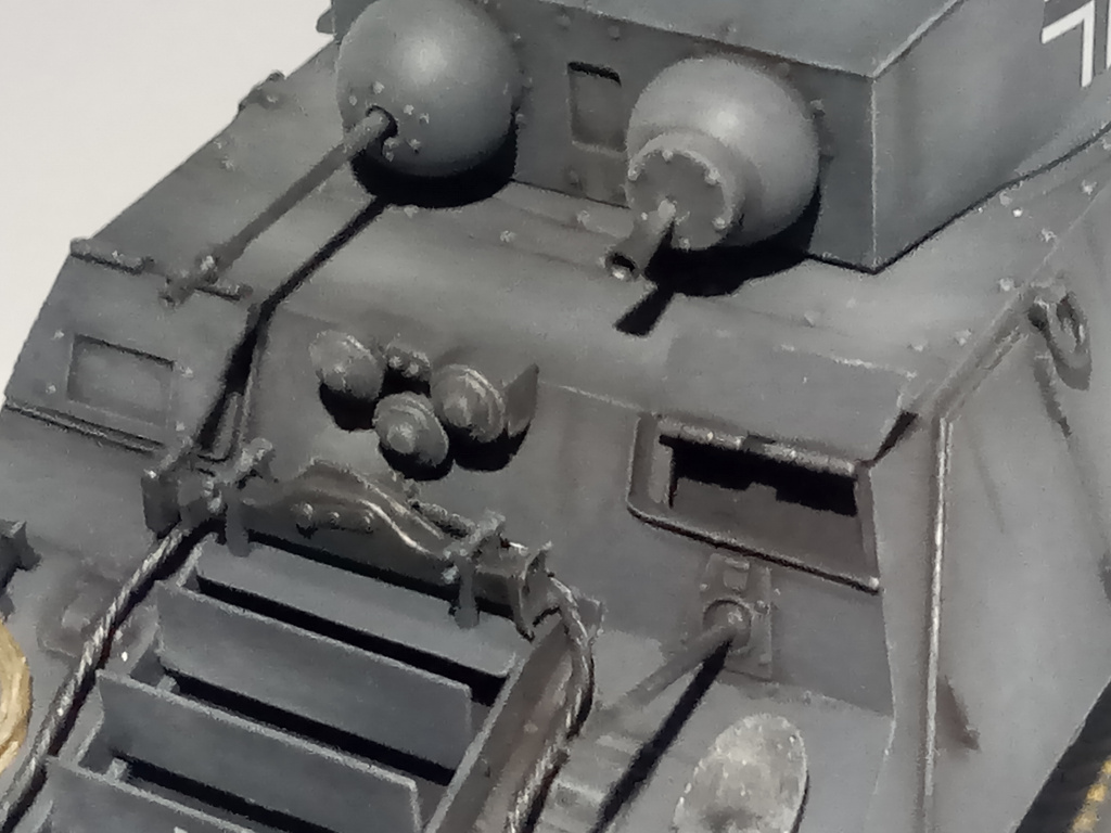 Bemalt wurde mit Pinsel und den Revell Aqua Colors. Hauptfarbe Panzergrau 78
