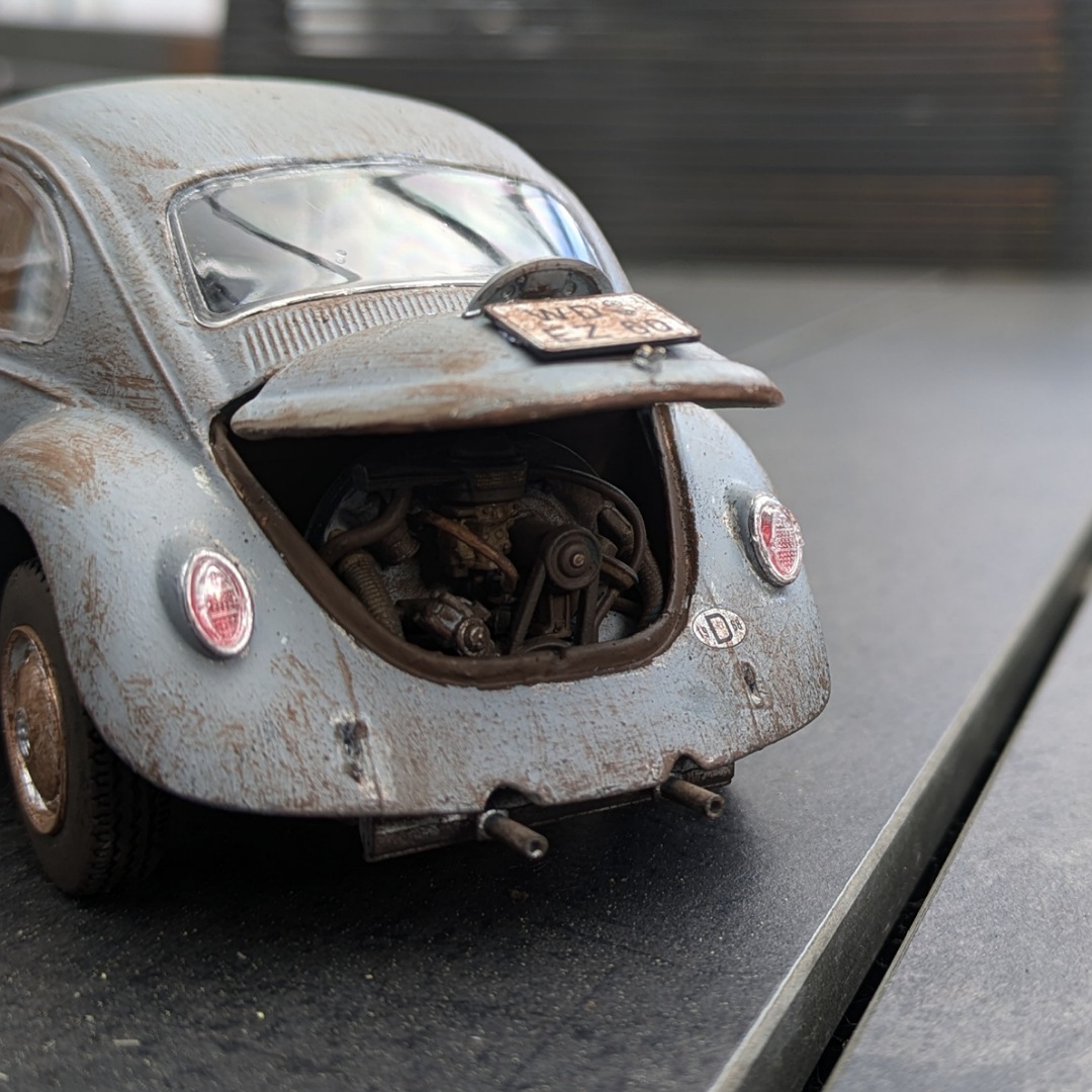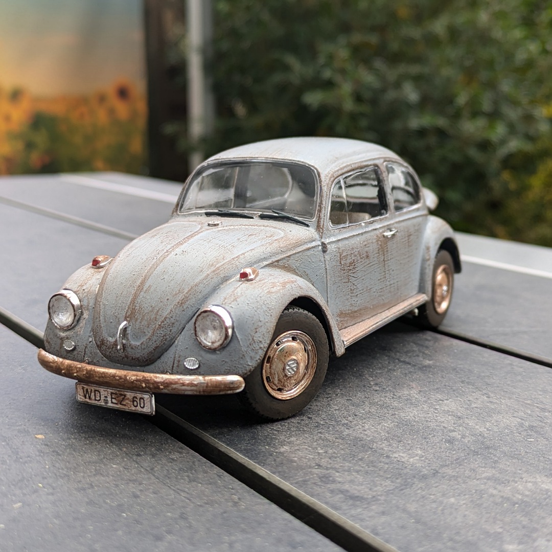 Ich hab nach langer Zeit mal wieder was gebaut und wollte das mal mit dem Forum hier teilen. Wie gesagt handelt es sich um einen VW Käfer der ein bisschen in die Jahre gekommen ist und in einer alten Garage gefunden wurde. Ist mein erster Autobausatz also ist Kritik gerne erwünscht :lol: