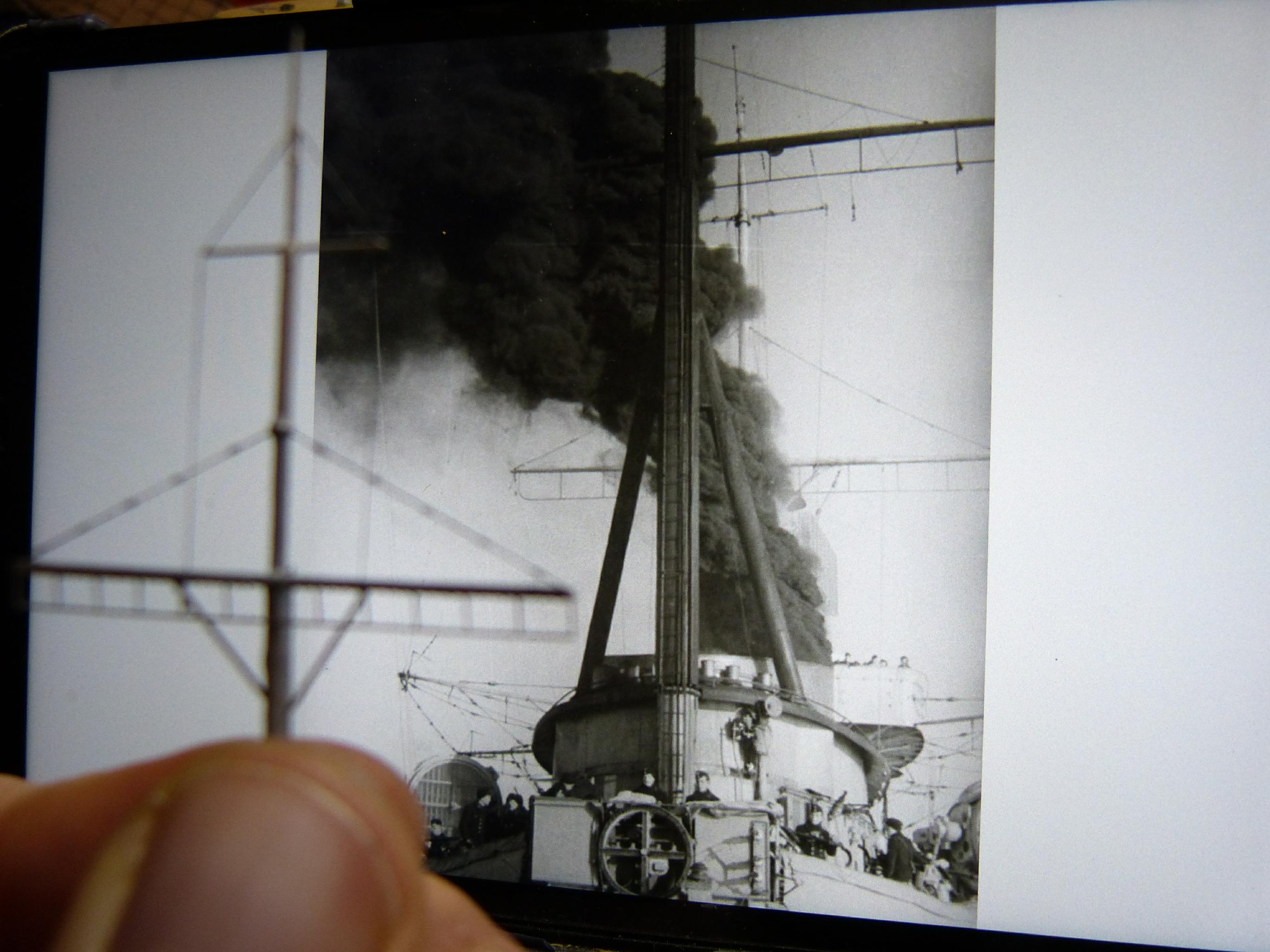 Zu sehen ist hier der vordere obere Mastteil im Vergleich zu einem Originalfoto. Entstanden sind die Mastteile aus Messingrohr, Kupferdraht und Ätzteilresten.