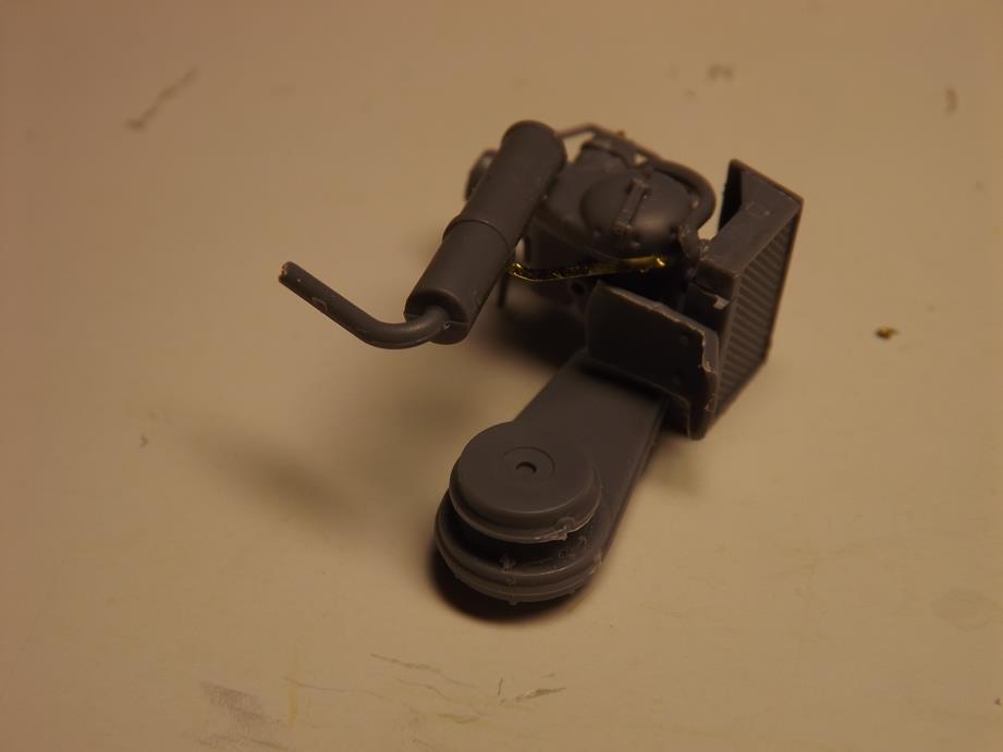 Da war dann noch ein Mini-Motörchen zusammenzukleben. Den Bügel über den Zylindern fertigte ich aus einem Messingdraht.