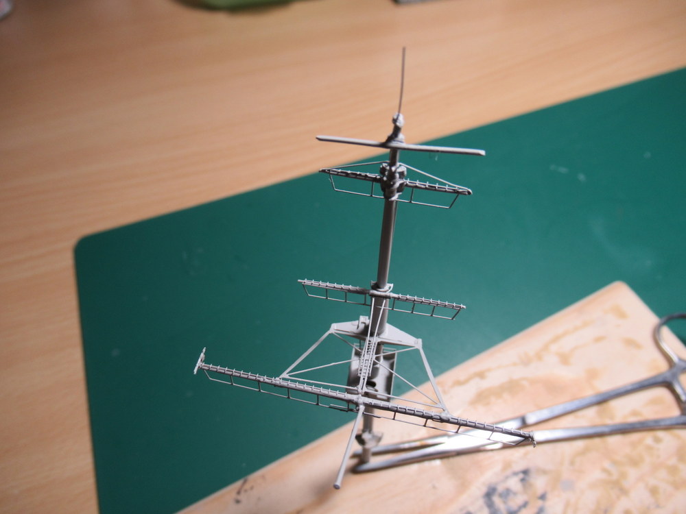 So... ich hab mit dem Hauptmast gekämpft. Geklebt getan und gemacht ... Alles drum und dran ... und schwubs rackt man den Tower doch einfach mal eben vom Basteltisch ... arrrrggg ...