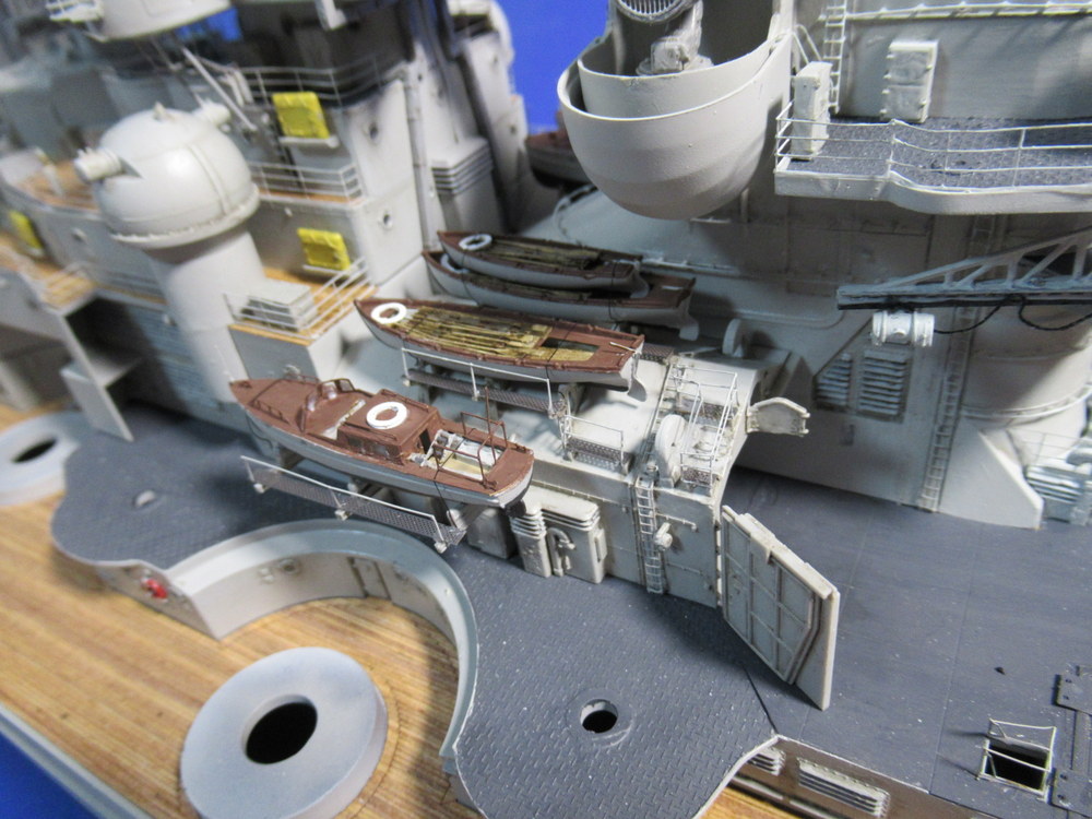 Dann kommt als nächstes der Flaggenstand. Darunter dann die Beiboote .