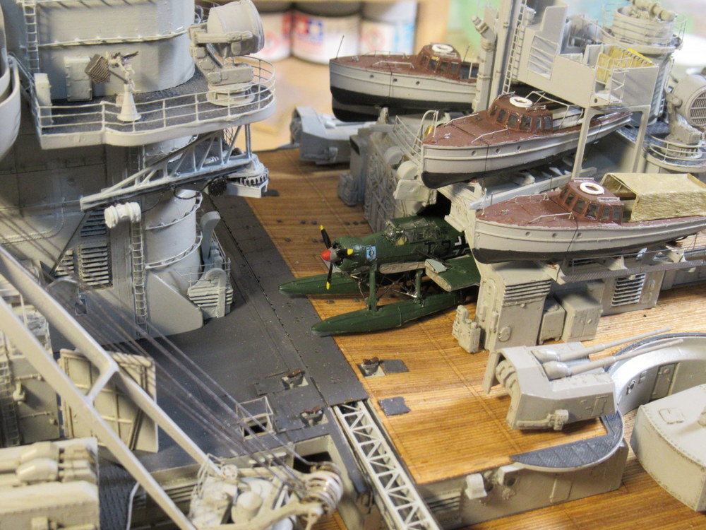 so ... ich hatte überlegt was ich den jetzt so in Angriff nehme . Da viel mir ein , dass ich ja auch noch die Boardflugzeuge bauen muss. 4 ARDO 196 Gehörten auf die Bismarck . Ich habe einen Hangar wie auch den Werkstatthangar offen gebaut. Hier soll jeweils 1 Flugzeug sichtbar sein .