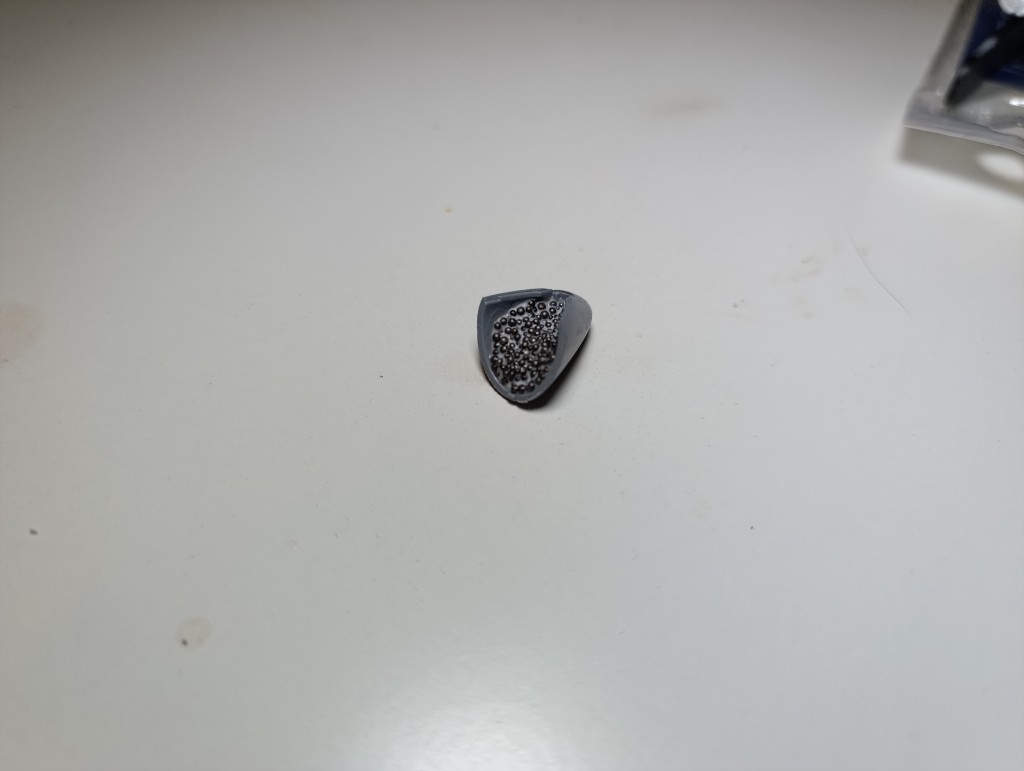In der Nase haben Bleikügelchen als Gewicht Platz gefunden, ich hoffe es reicht, es gab keine konkreten Angaben dazu