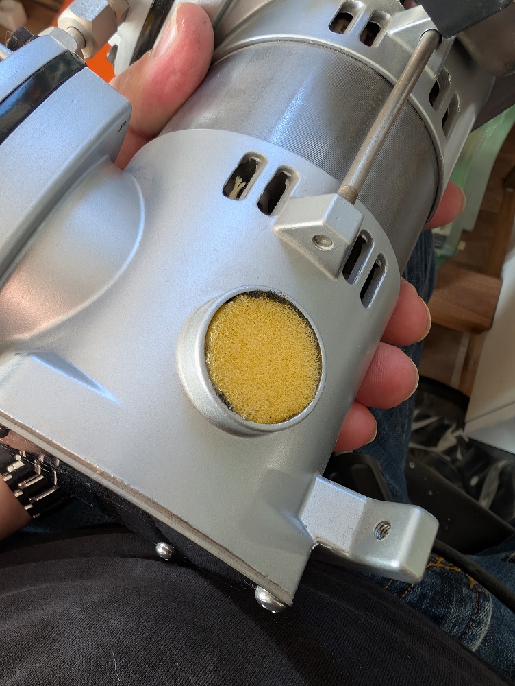 und mit einem Stück Stoff und einem Kabelbinder als Filterersatz eingebaut: