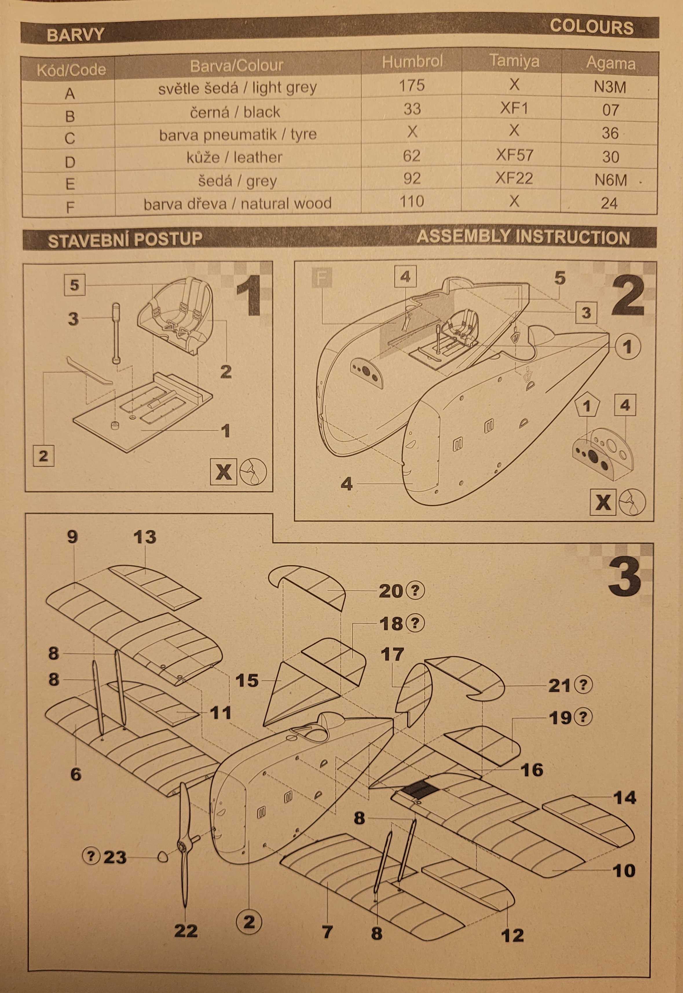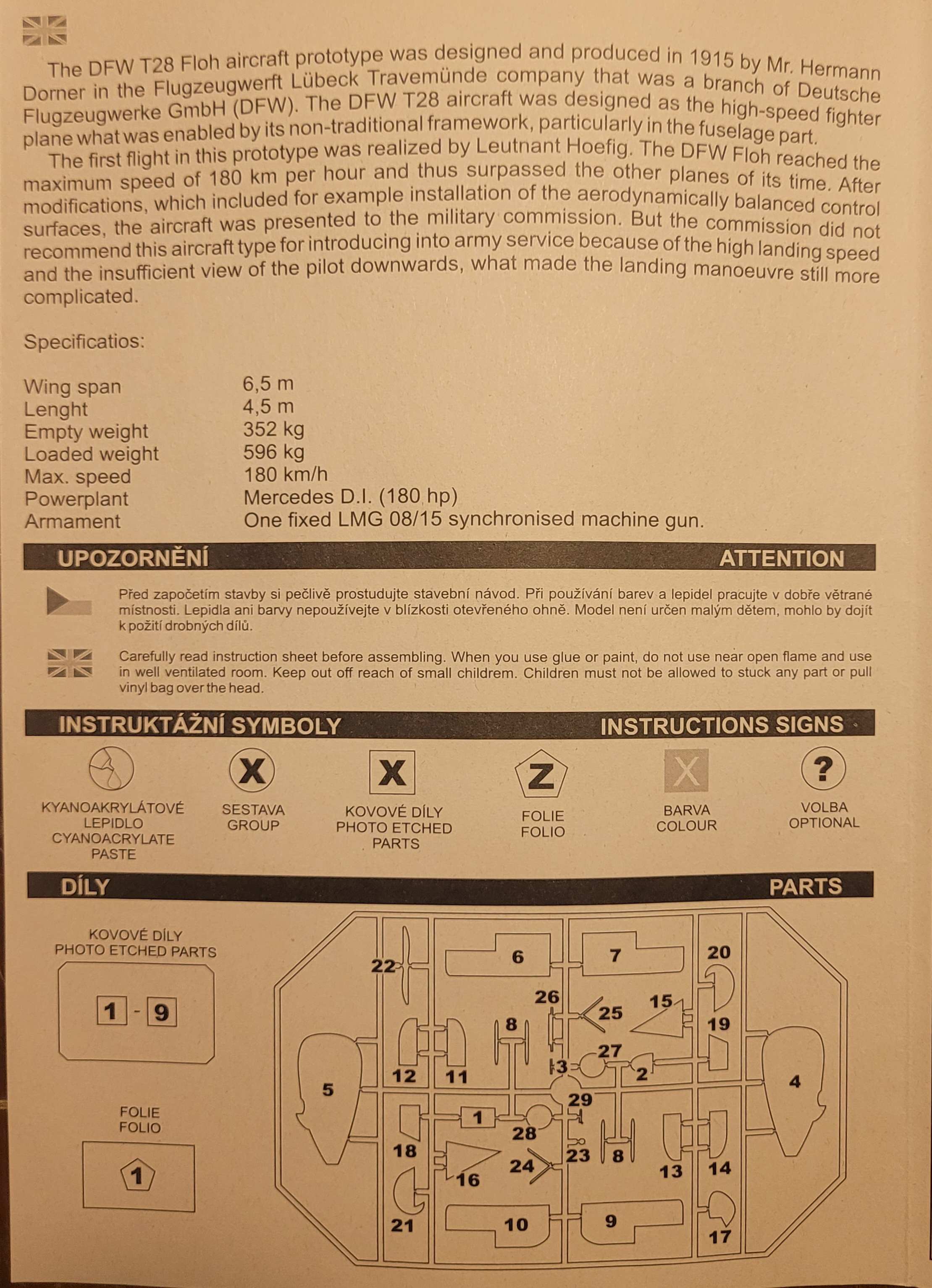 Die Anleitung kommt in tschechisch und englisch daher und bietet den obligatorischen, kurzen Abriss zum Flugzeug nebst einiger technischer Daten.
