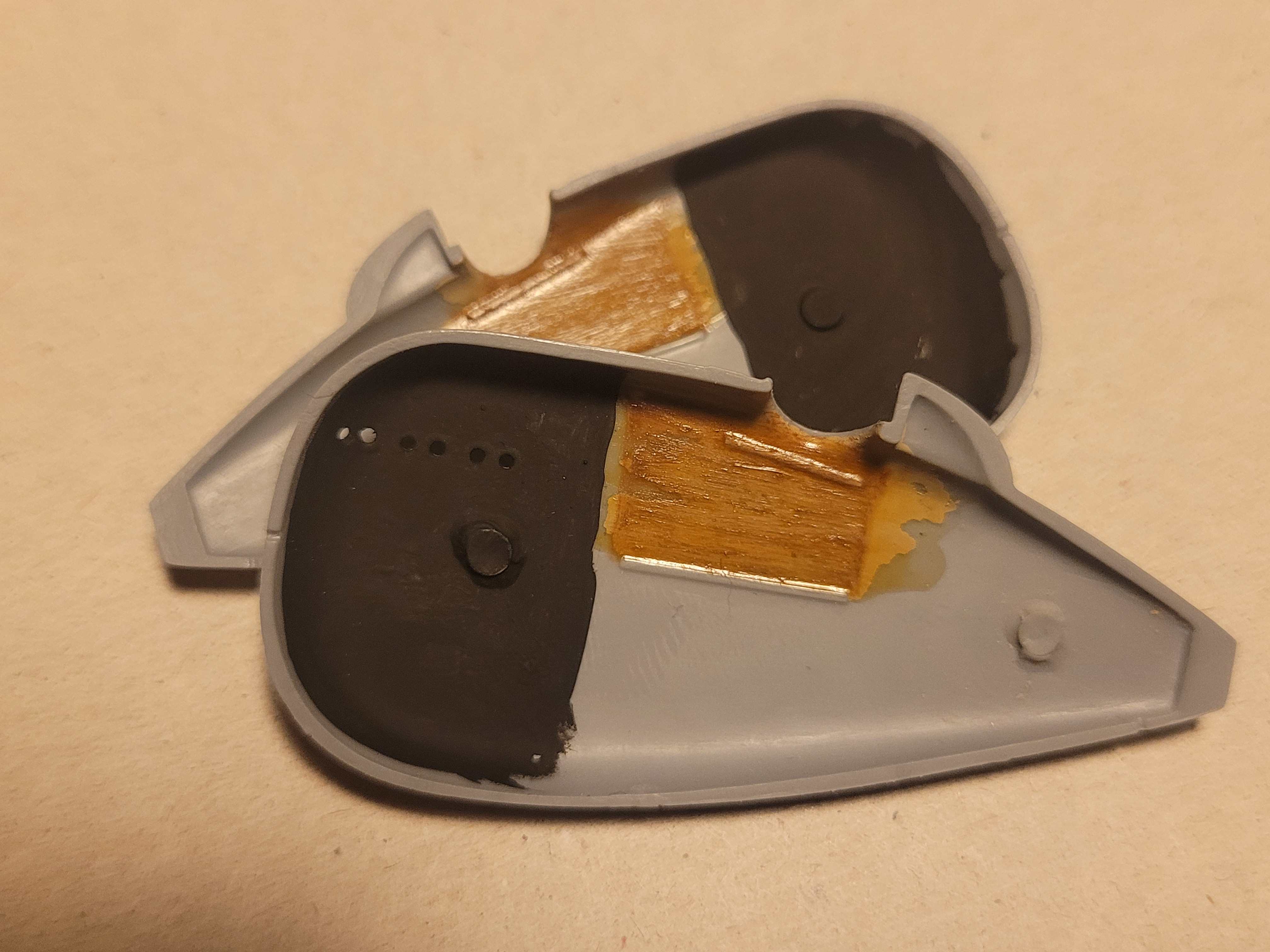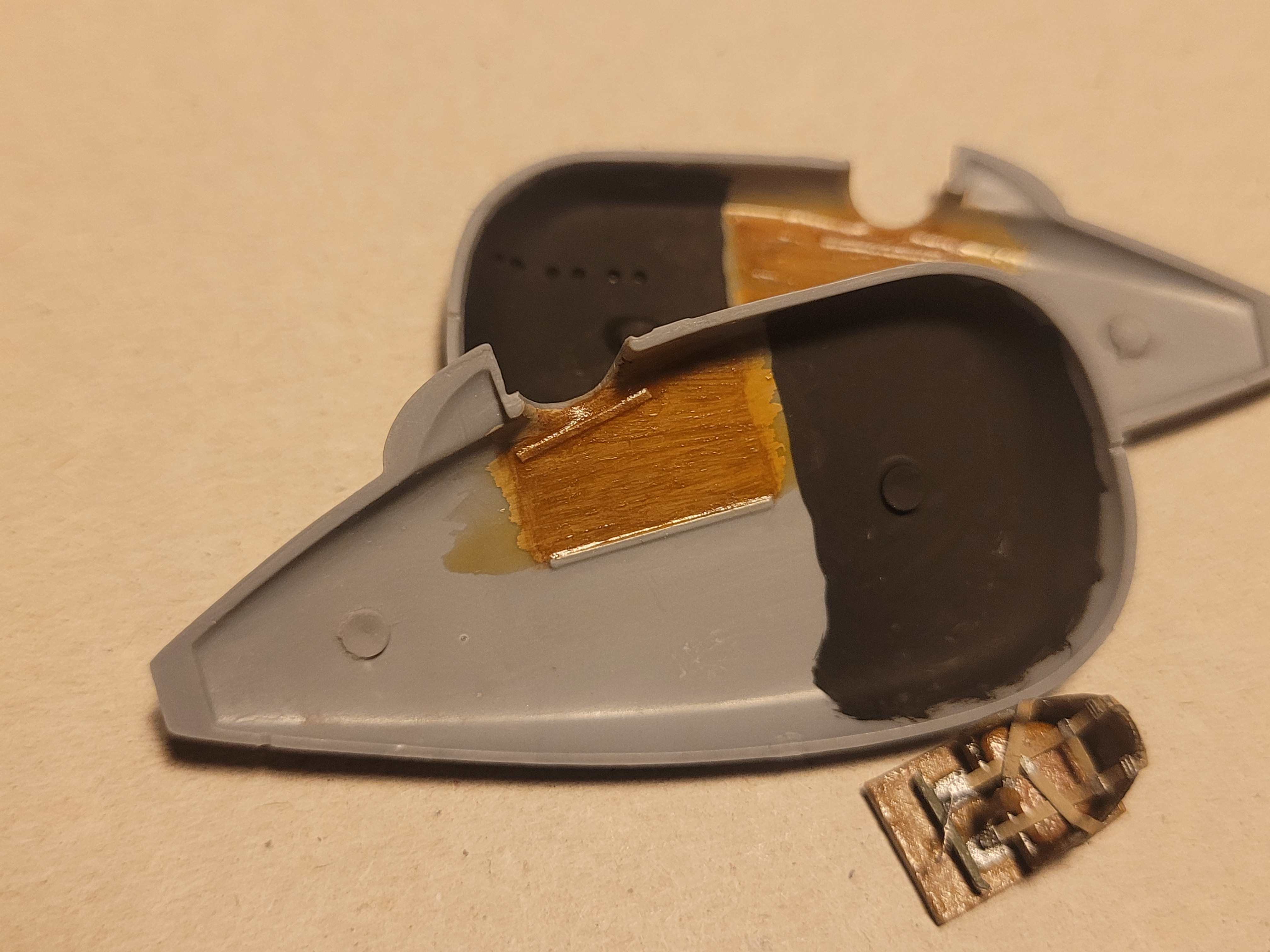 Hab zuerst die Außenseiten gepimpt. Sprich Abgasöffnungen aufgebohrt, Fixpunkte für das spätere Rigging markiert usw.