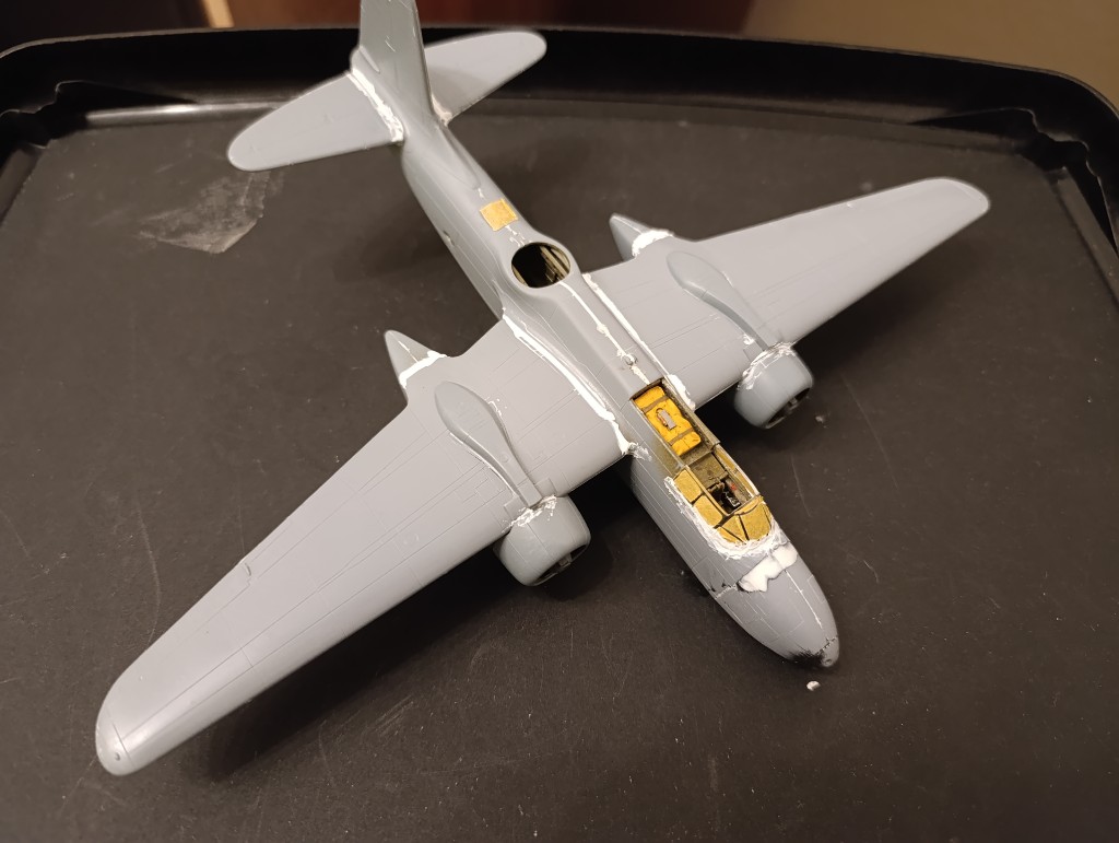 Ich habe tatsächlich mit keiner silbe mehr daran gedacht, dass die Passung so schlecht war. Man sieht es ja an dem großen Einsatz vom Putty. Ich hab ja vor gut zwei Jahren schon eine A-20 gebaut und dachte eigentlich dass diese nicht so schlecht war. Aber irgendwie, naja ich hab auch schon schlechtere Bausätze gehabt, da werde ich hier auch fertig werden.