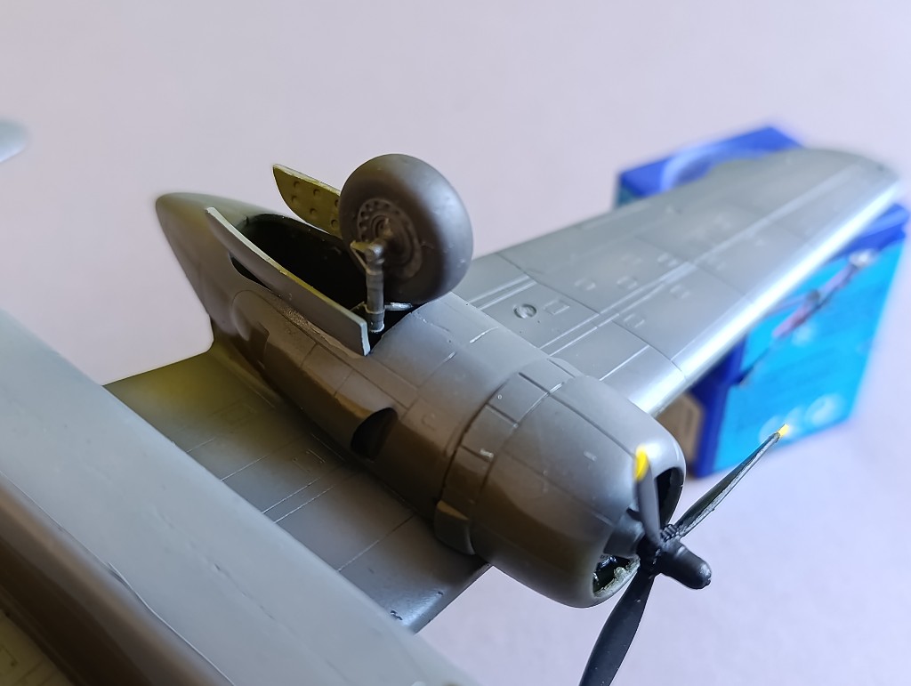 Dafür habe ich die Propeller entsprechend angemalt. Und das Fahrwerk vorbereitet.
