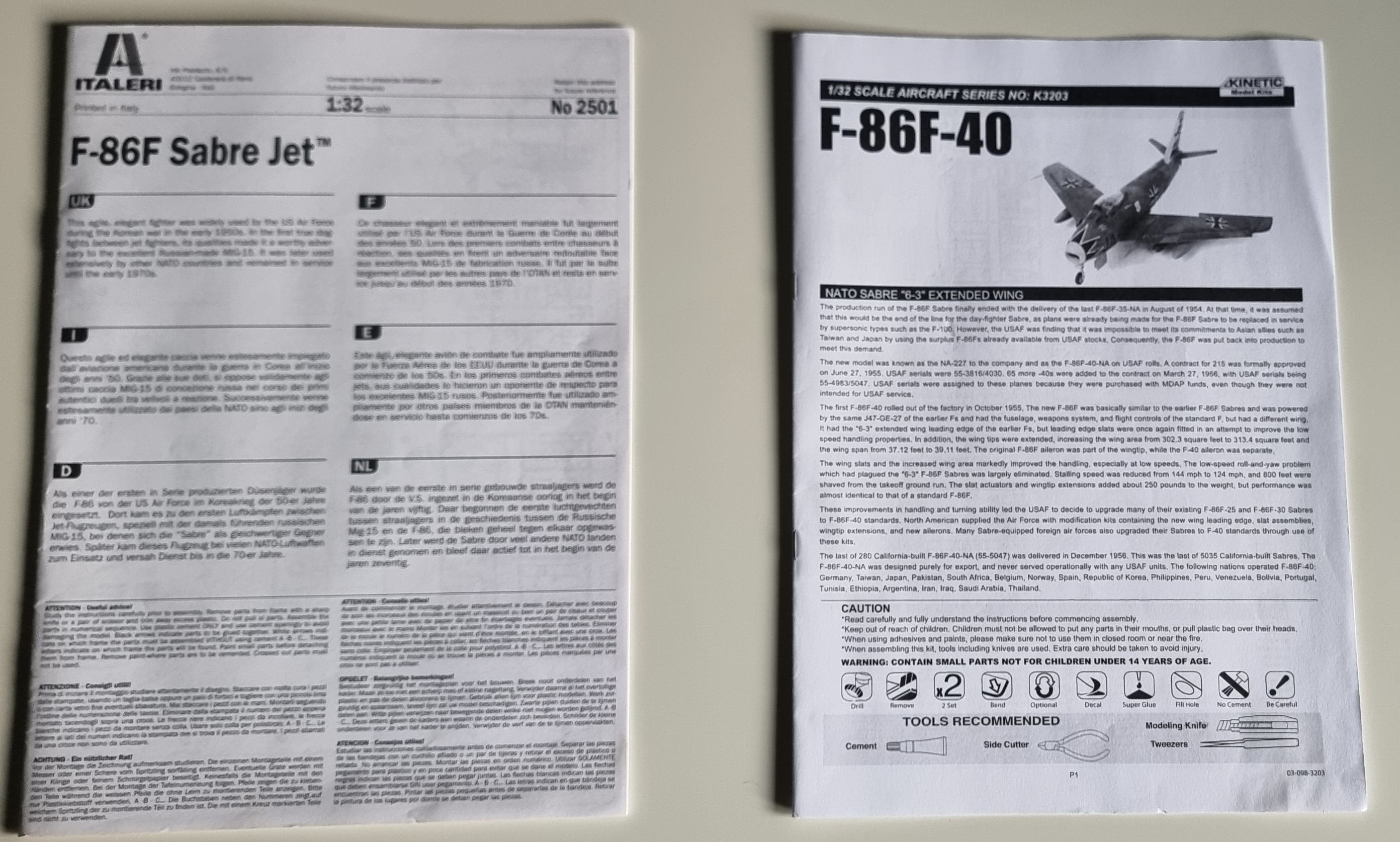Das zweite Kit von Kinetic F-86F-40 NATO Sabre "6-3" Extended Wing wurde 2009 oder 2010 veröffentlicht. Im Gegensatz zum Italeri Modell beinhaltet es nur Decals für eine Variante: