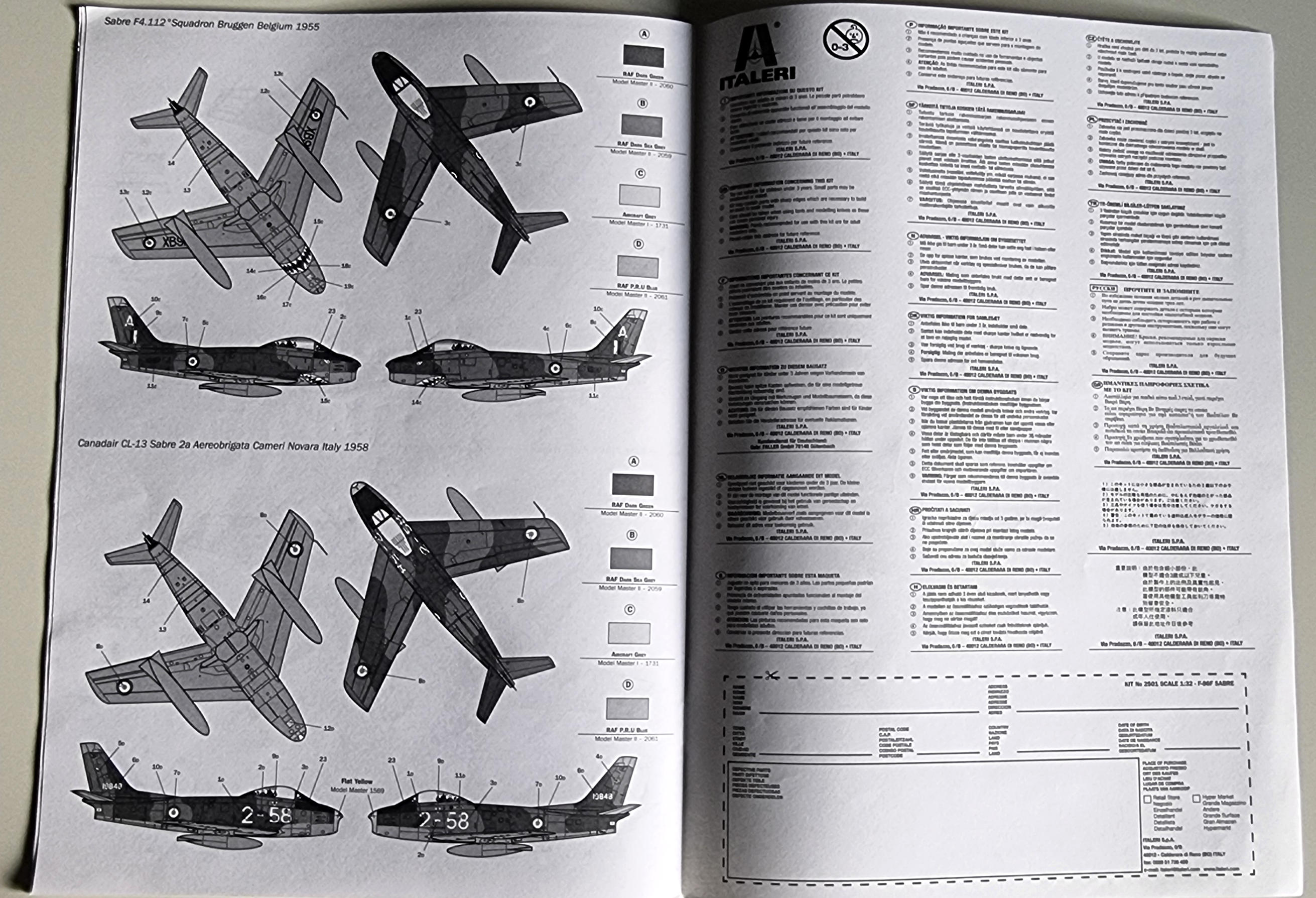 Die benötigten Farben werden, inkl. Bezeichnung, übersichtlich in der Anleitung aufgeführt und den Farbcodes von insgesamt 6 Anbietern (Humbrol, Tamiya, Mr. Color, Italeri, Vallejo und Ammo Mig.) zugeordnet. Wobei jedoch nicht jeder Anbieter alle Farben im Sortiment hatte. Laut den Angaben im Flugzeugforum sollte die Tarnlackierung hauptsächlich aus den Farben RAL 6014, 7012 und 7001 bestehen.