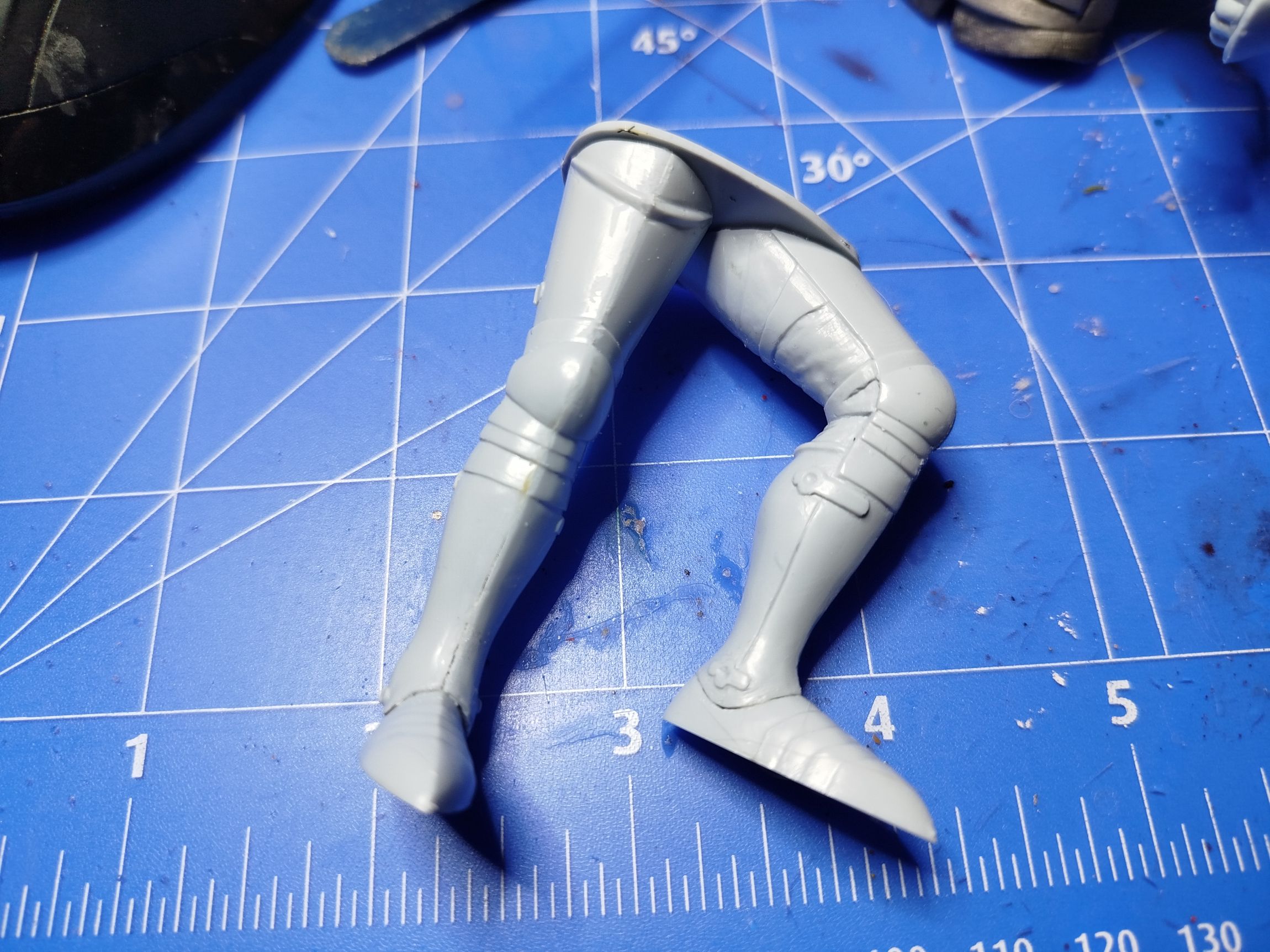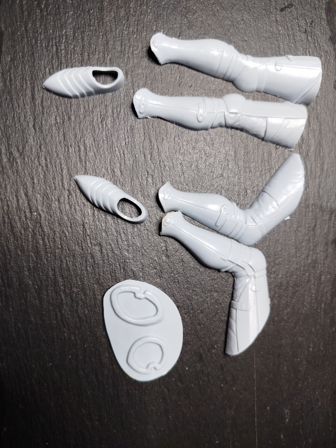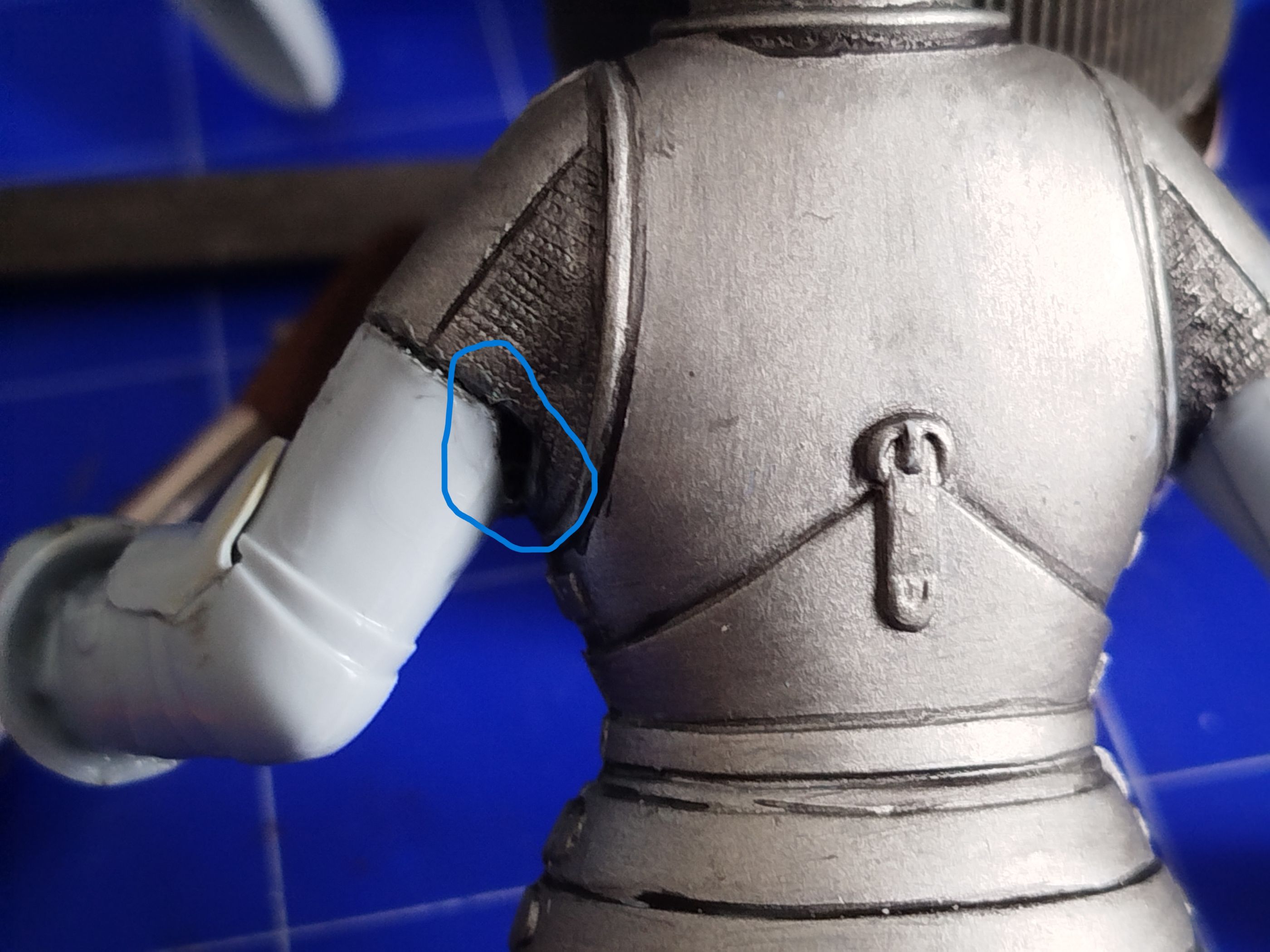 der linke Arm passt zwar, nur die Haltung sieht komisch aus, deshalb habe ich in leicht gedreht, so ist auch das Kettenhemd vorne in der gleicher Flucht. Dadurch entsteht eine kleine Öffnung, die wurde verspachtelt, da man sie auch mit dem Schulterschutz noch sieht.