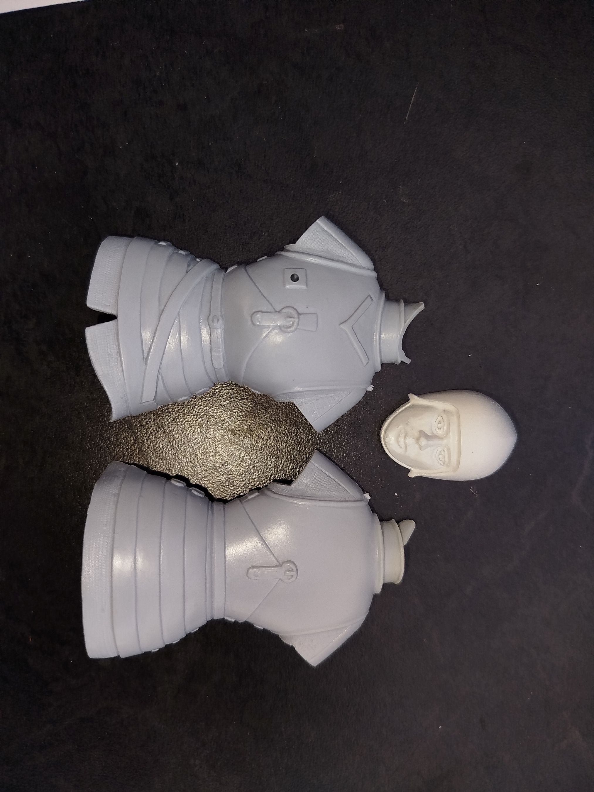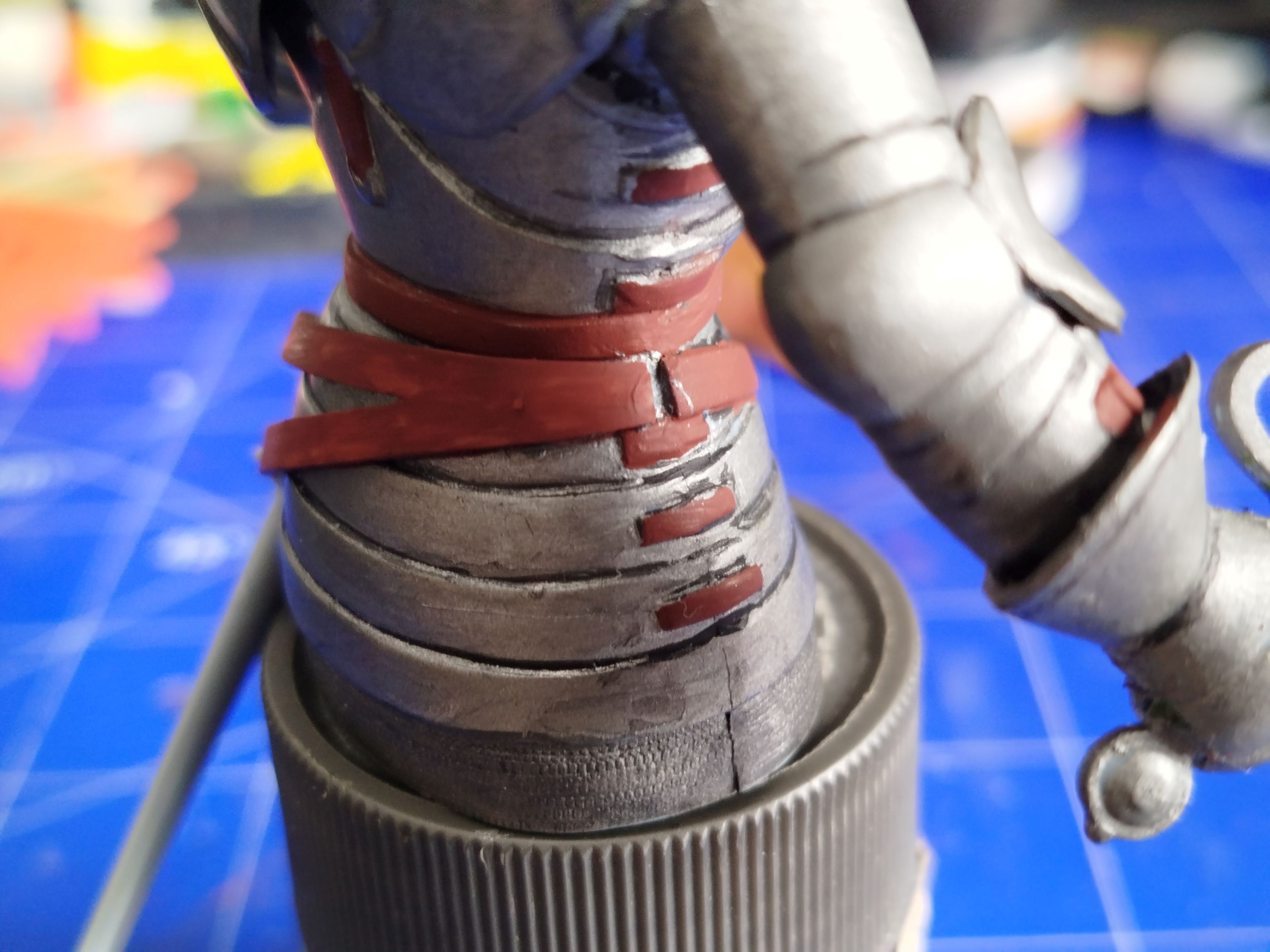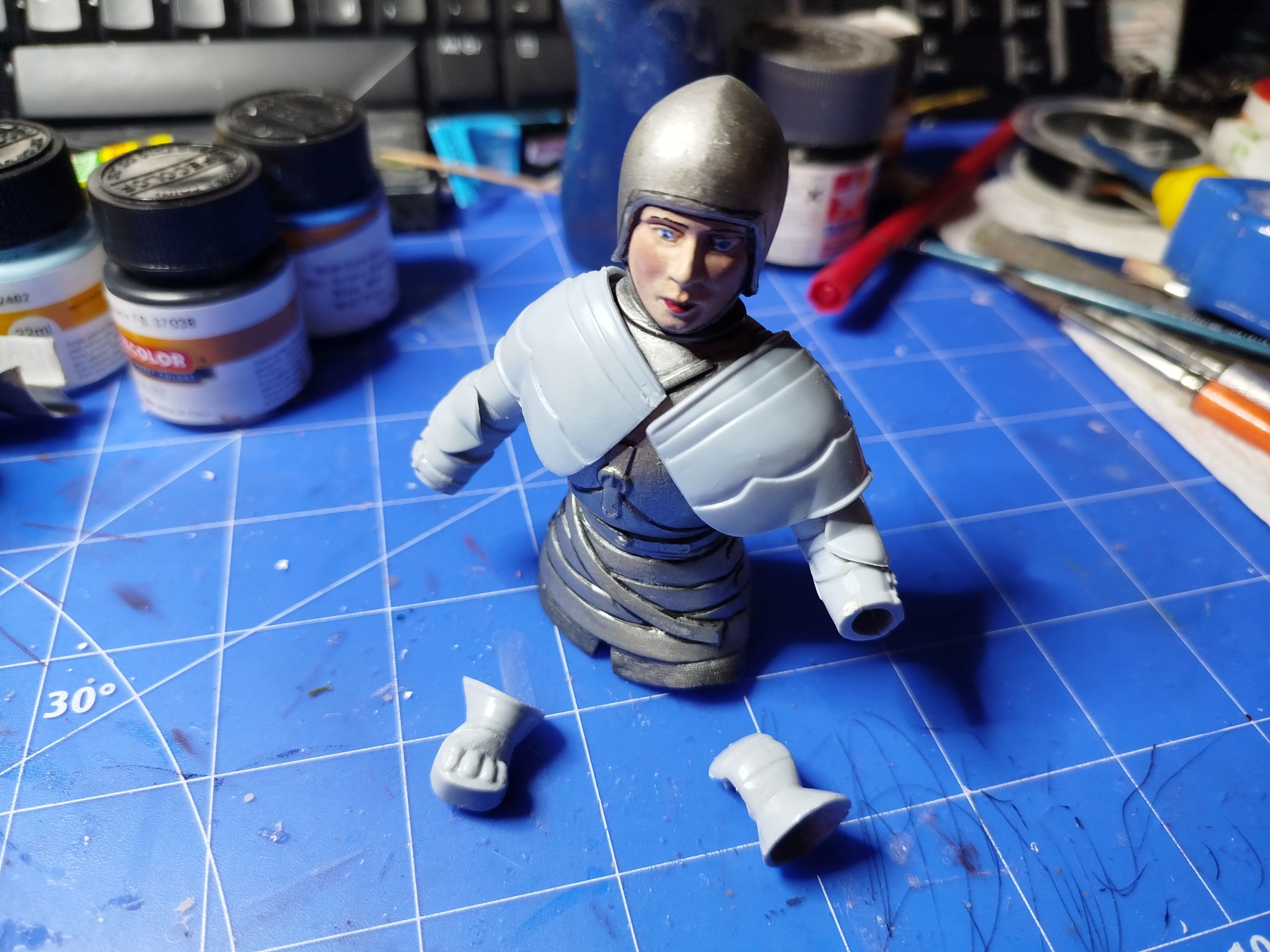 der linke Arm passt zwar, nur die Haltung sieht komisch aus, deshalb habe ich in leicht gedreht, so ist auch das Kettenhemd vorne in der gleicher Flucht. Dadurch entsteht eine kleine Öffnung, die wurde verspachtelt, da man sie auch mit dem Schulterschutz noch sieht.