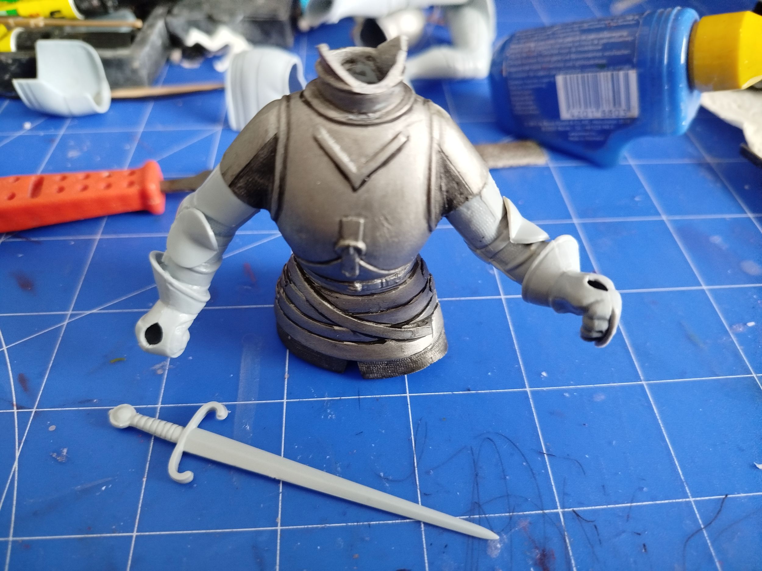 Nach dem ich Arme und Hände angeklebt hatte, wollte ich das Schwert anprobieren, und da bewahrheitet sich der Spruch.