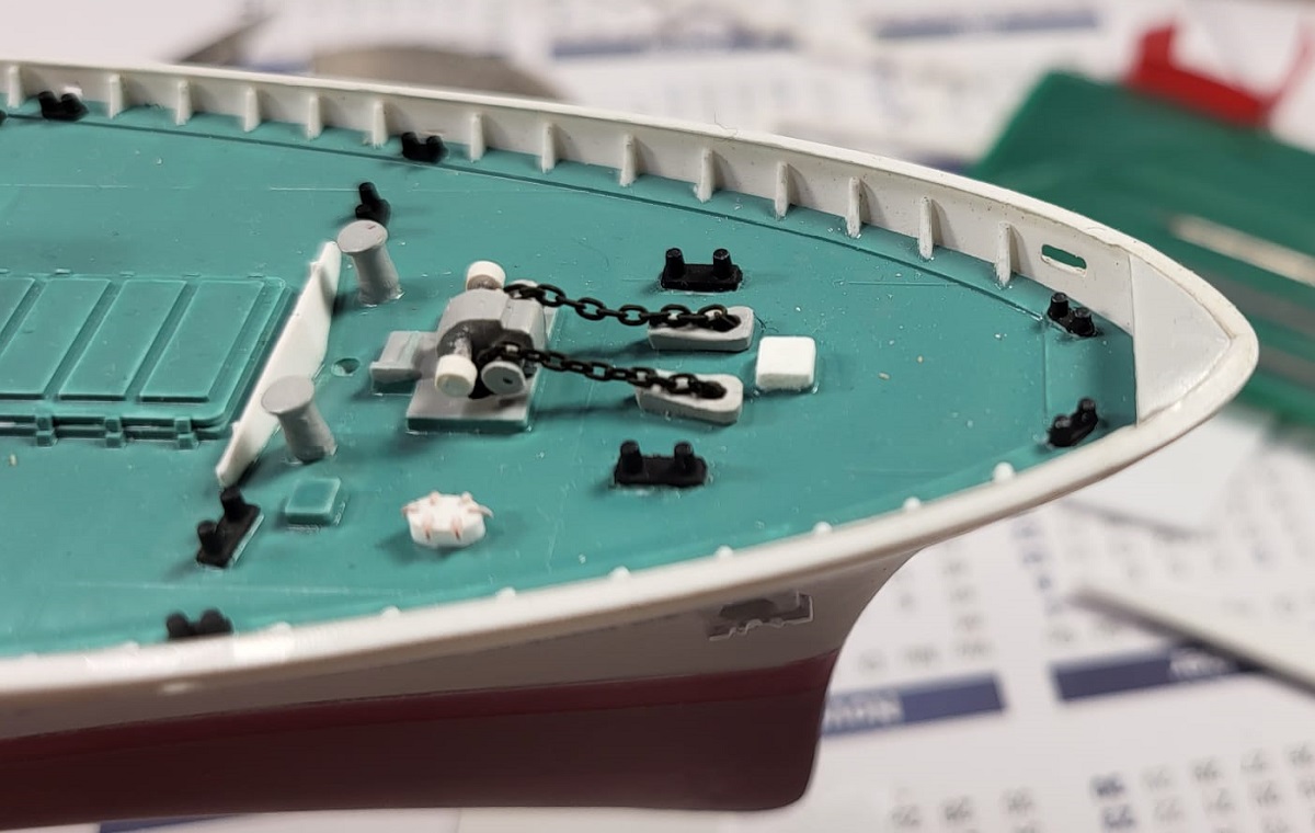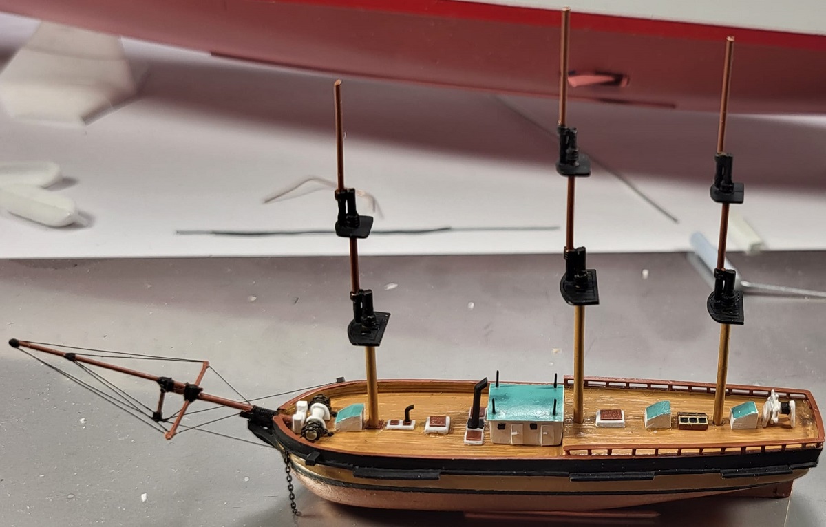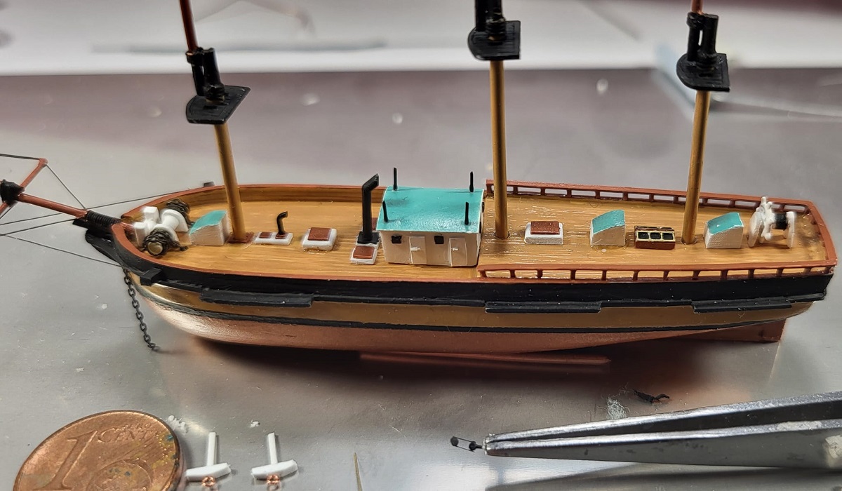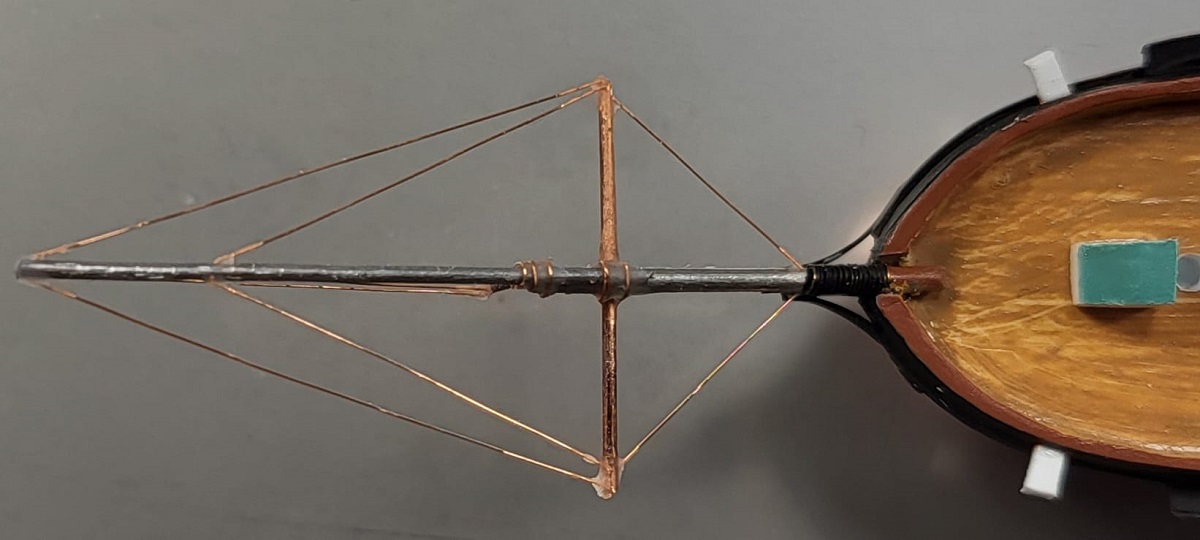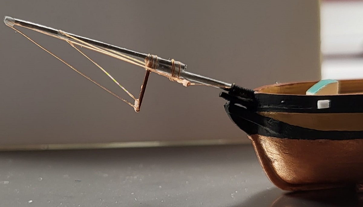 Die Segelstangen wirken so sofort eleganter und filigraner und zur Dimension des Bugspriets passend.