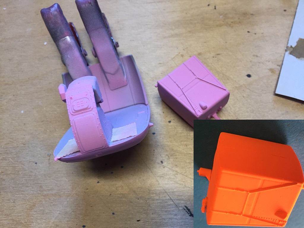 Bei der letzten Alouette II mußte ich den Tank 5 mal mit Leuchtorange 25 lackieren bis es einen deckenden Farbauftrag gab. Dieses mal habe ich mit Weiß plus ein Tropfen rot vor lackiert und es deckt beim ersten mal.