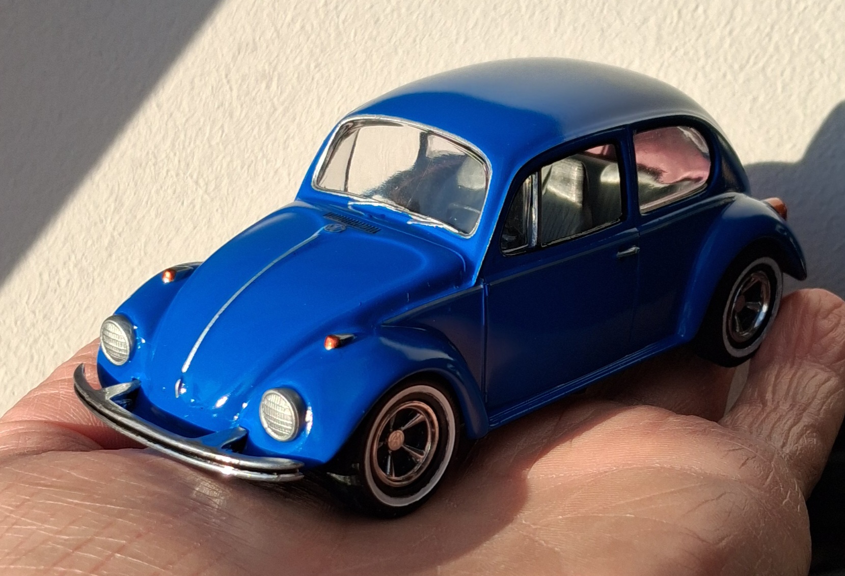 Letztes Jahr an Weihnachten haben drei unserer Enkelkinder (damals 5 - 6 - 7) jeweils einen Airfixbausatz (Käfer, Mustang, Bulli) bekommen und die hat der Opa mit ihnen bis Silvester gebaut gehabt. Natürlich mag ich deren Interesse. Gerade der nun 7jährige hat mit mir schon 5 Modelle zusammen gekriegt plus eben den Käfer, den er sich so zusammengestellt hat.