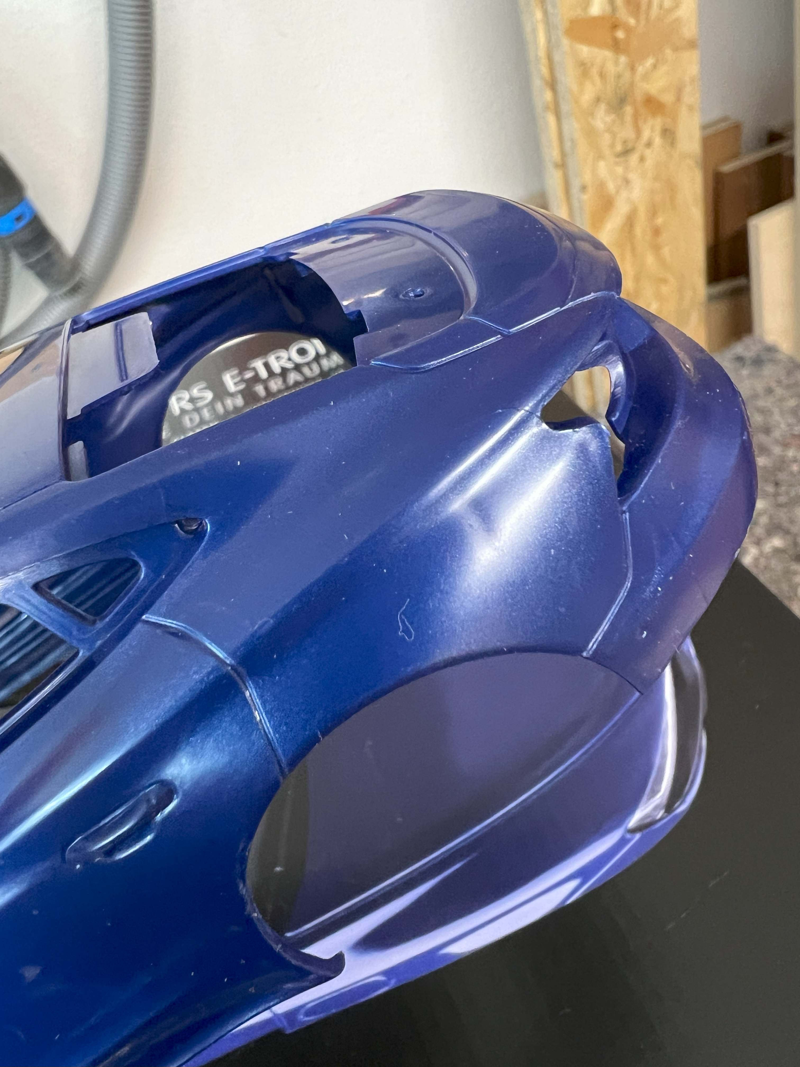 Dafür, dass man die Karosserie eigentlich nicht bemalen soll, sondern sie schon entsprechend eingefärbt ist, macht das keinen guten Eindruck.