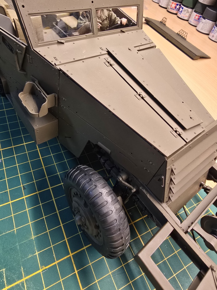 Die Jacke des Fahrers sollte laut Farbschema von AK M42 Uniform Green Ocker Kahki werden ( die Farbe lag dem Figurenset von AK bei )